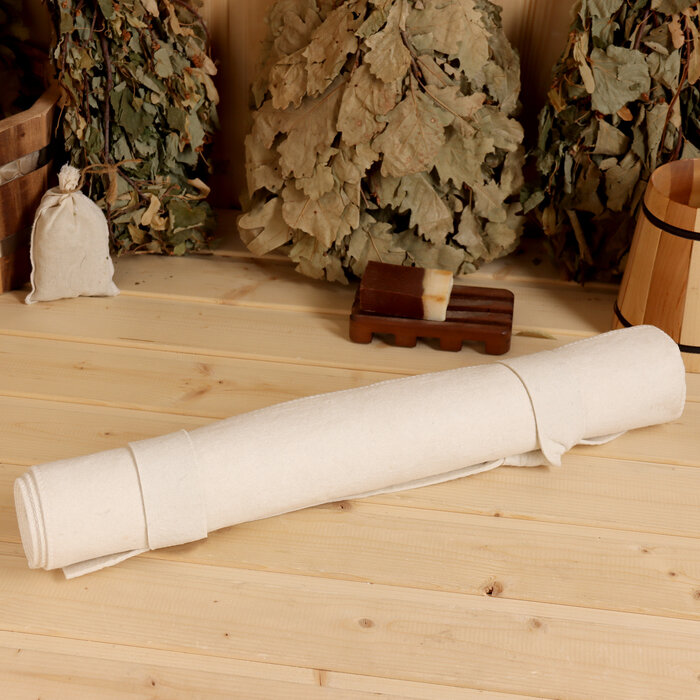 Коврик необходим в целях личной гигиены, чтобы сидеть на нем в парной. При этом важно, чтобы коврик был выполнен из натурального материала. Данный коврик сделан из шерстяного материала - войлока. Войлок обладает низкой теплопроводностью и не позволяет телу перегреваться. Также войлок гигроскопичен, он хорошо впитывает пот и это дает возможность пребывать в сауне более длительное время в комфортных условиях.