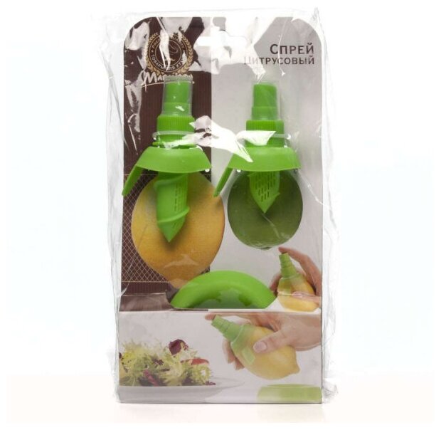 Придать вашему фирменному блюду или напитку настоящий цитрусовый вкус поможет цитрусовый спрей. Он представляет собой набор из двух клапанов, которые используются в простейших пульверизаторах. Клапаны имеют разные размеры для использования с цитрусовыми различных размеров. Метод использования удивительно прост: срежьте верхнюю часть плода и ввинтите в мякоть один из клапанов. Уникальный цитрусовый спрей готов! Теперь достаточно одного легкого нажатия пальцем, и ваши блюда дополнятся ароматом натуральных цитрусовых фруктов! Цитрусовый спрей можно использовать для всех видов цитрусовых, лимонов и апельсинов, мандаринов, лаймов, грейпфрутов и других. В наборе два спрея (для больших и маленьких плодов) и подставка. Предметы набора выполнены из высококачественного полипропилена и силикона.