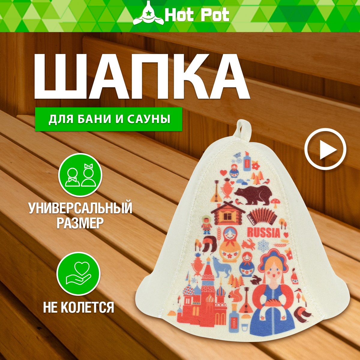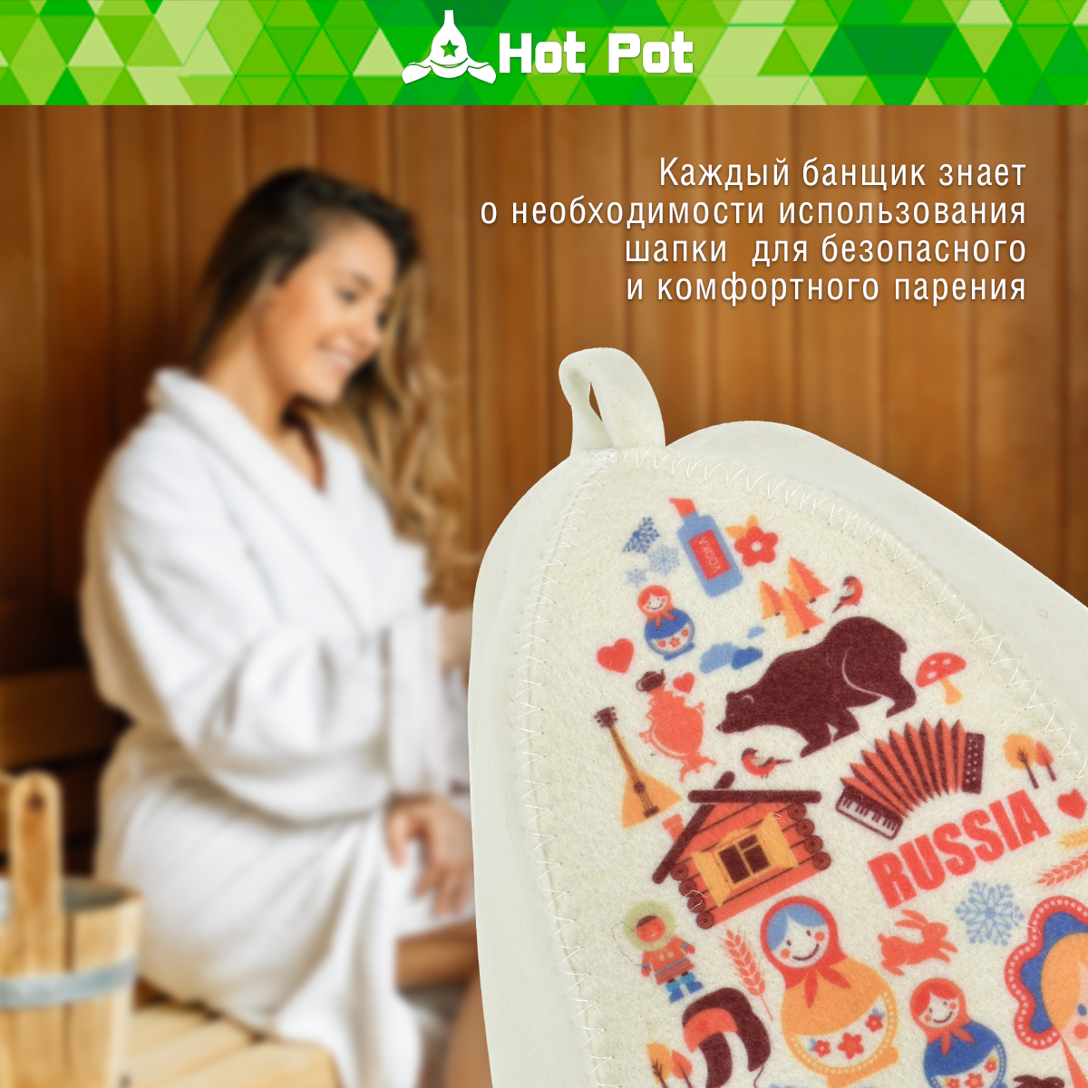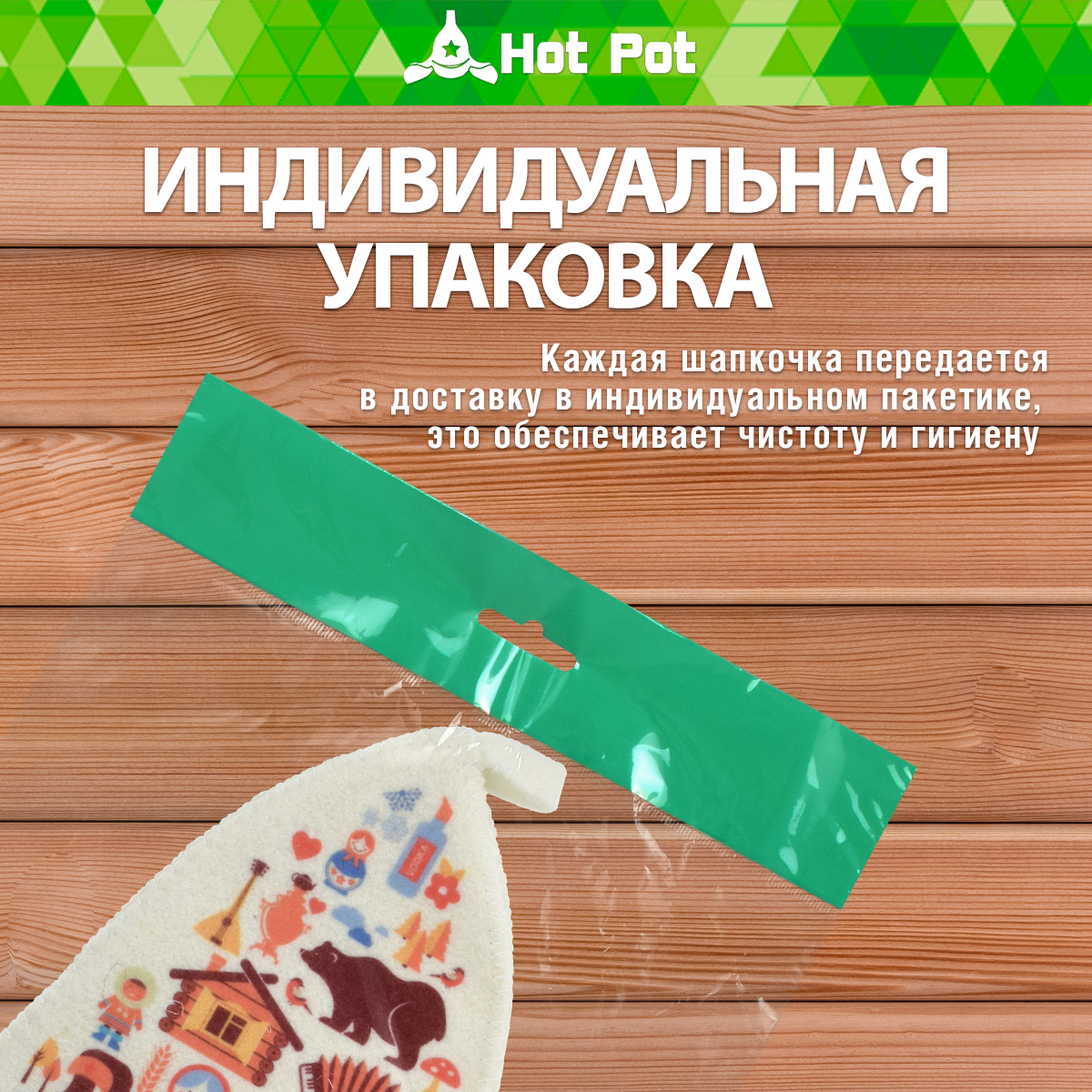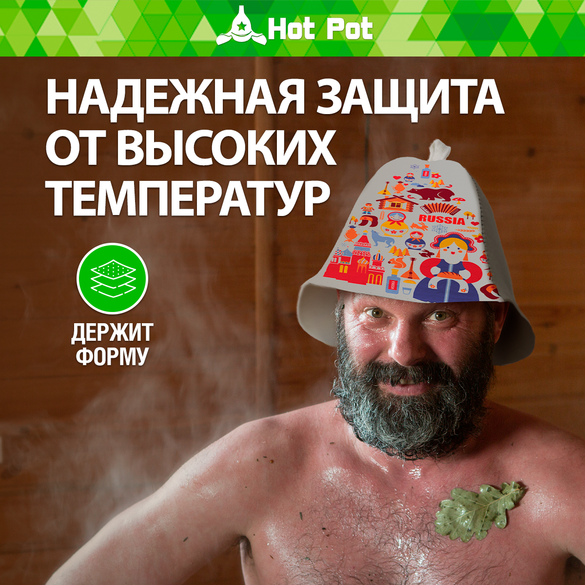 Шапка защитит вас от головокружения в бане, ваши волосы от сухости и ломкости, а голову от перегрева. Шапка изготовлена из войлока с оригинальной надписью и рисунком.