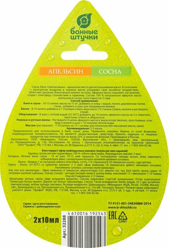 На сегодняшний день товар «Набор эфирных масел Банные Штучки в блистере Апельсин и Сосна 10 мл 32288» можно купить с кешбеком в 1 магазине: Яндекс.Маркет