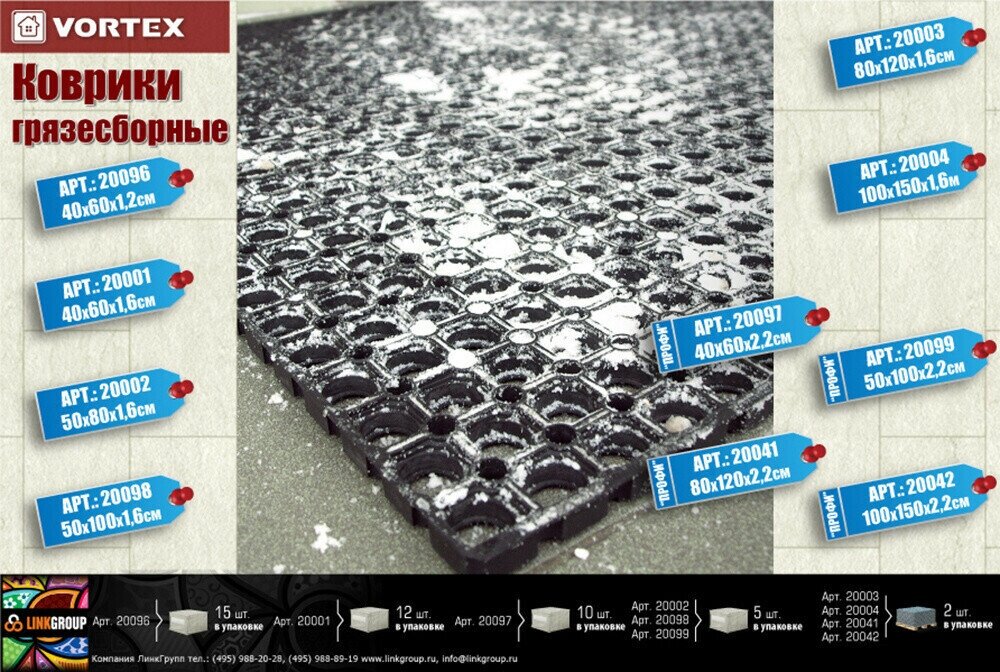 - Коврик ячеистый, грязесборный Профи, 80х120х2,2см (Vortex) обзор 20041