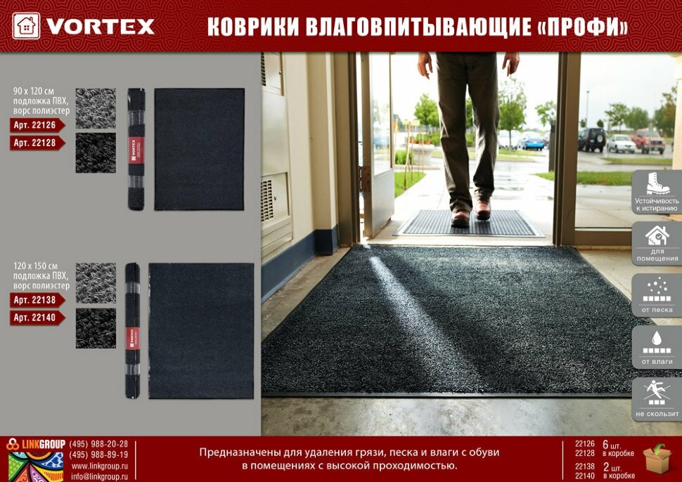 - Коврик влаговпитывающий Welcome, 50х80см (Vortex) обзор 24154 производитель ЛинкГрупп ПТК (Россия)