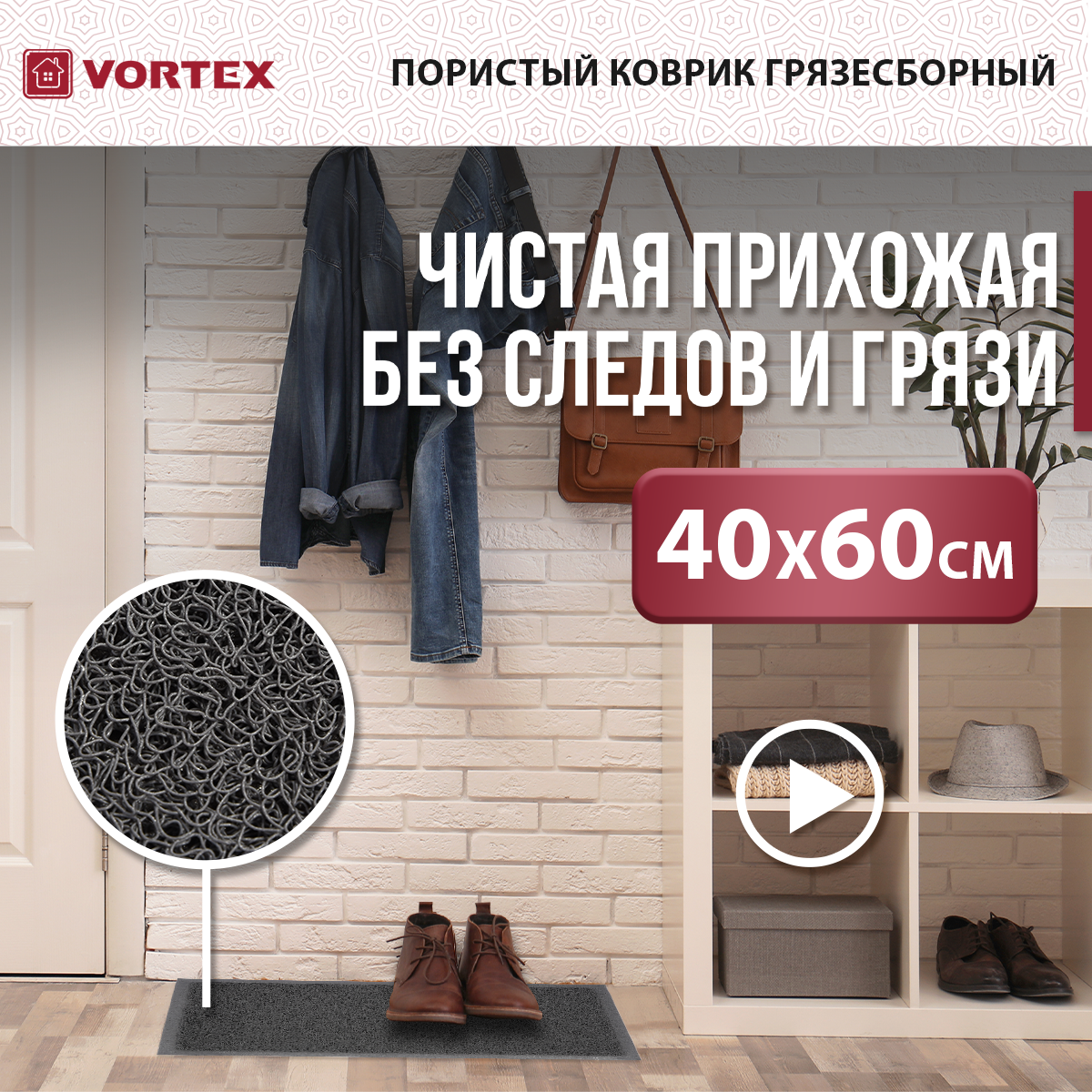 - Коврик пористый 60х90 см, коричневый (Vortex) обзор 22200 производитель ЛинкГрупп ПТК (Россия)