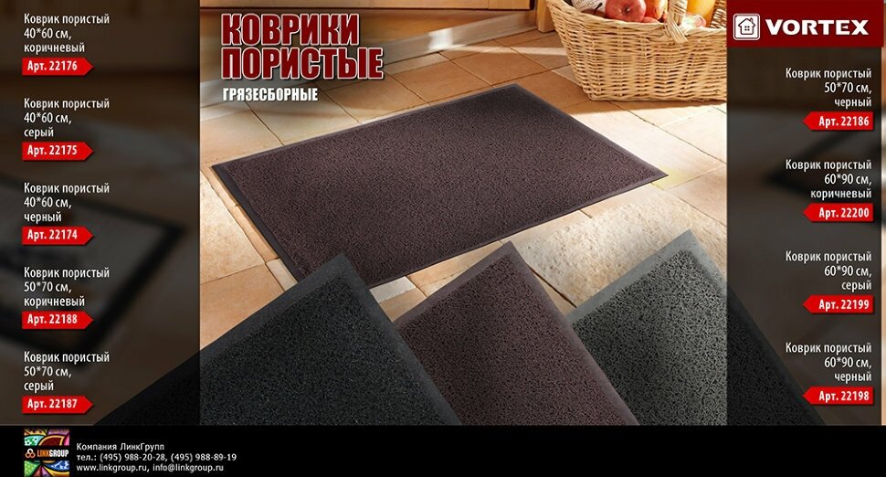 - Коврик пористый 50х70 см, коричневый (Vortex) обзор 22188 производитель ЛинкГрупп ПТК (Россия)