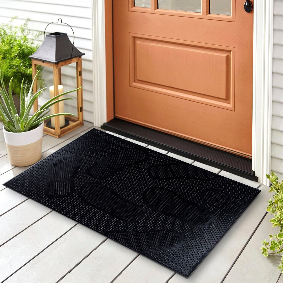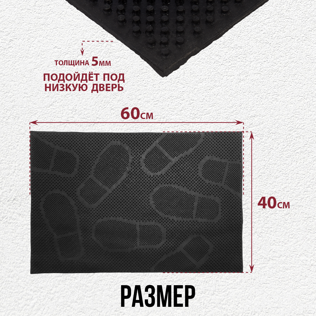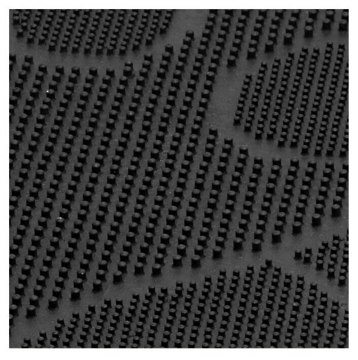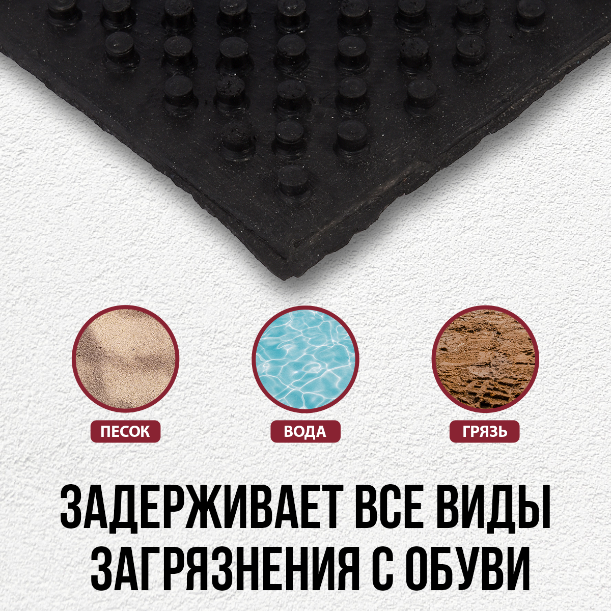 Классический резиновый придверный коврик. Благодаря шипам и рельефной поверхности отлично очищает обувь от грязи и песка при входе в помещение. Легко моется водой. Не скользит.