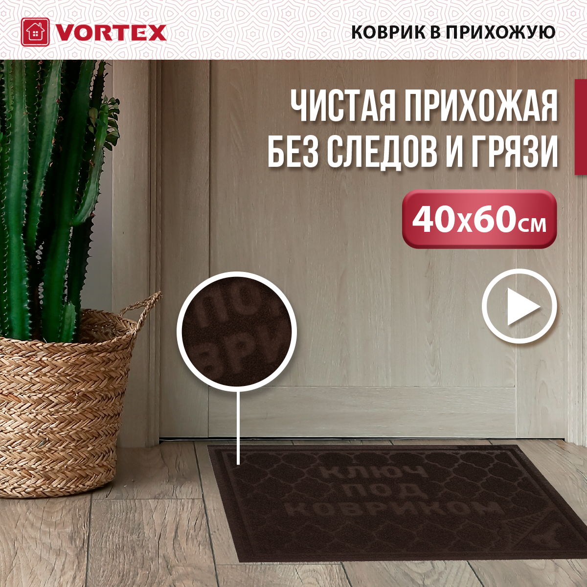 Коврик придверный 40х60 см, черный, Ключ (Vortex) обзор 22460 производитель ЛинкГрупп ПТК (Россия)