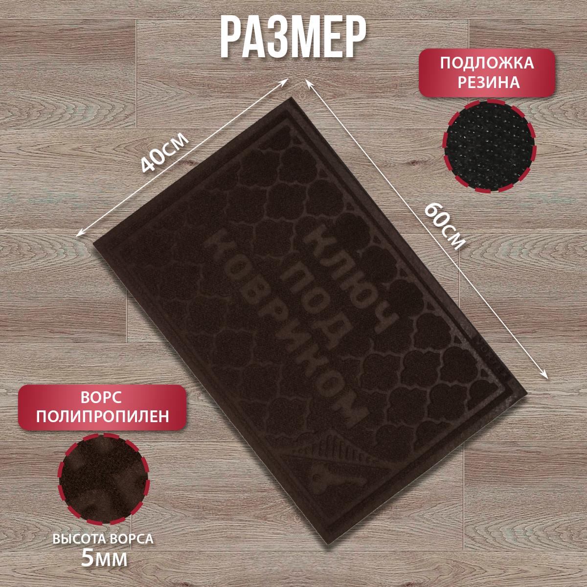 - Коврик придверный COMFORT Ключ под ковриком, 40х60см (Vortex) обзор 22380