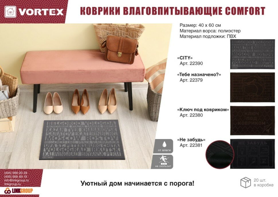 - Коврик придверный 40х60 см, черный, Ключ (Vortex) обзор 22460 производитель ЛинкГрупп ПТК (Россия)