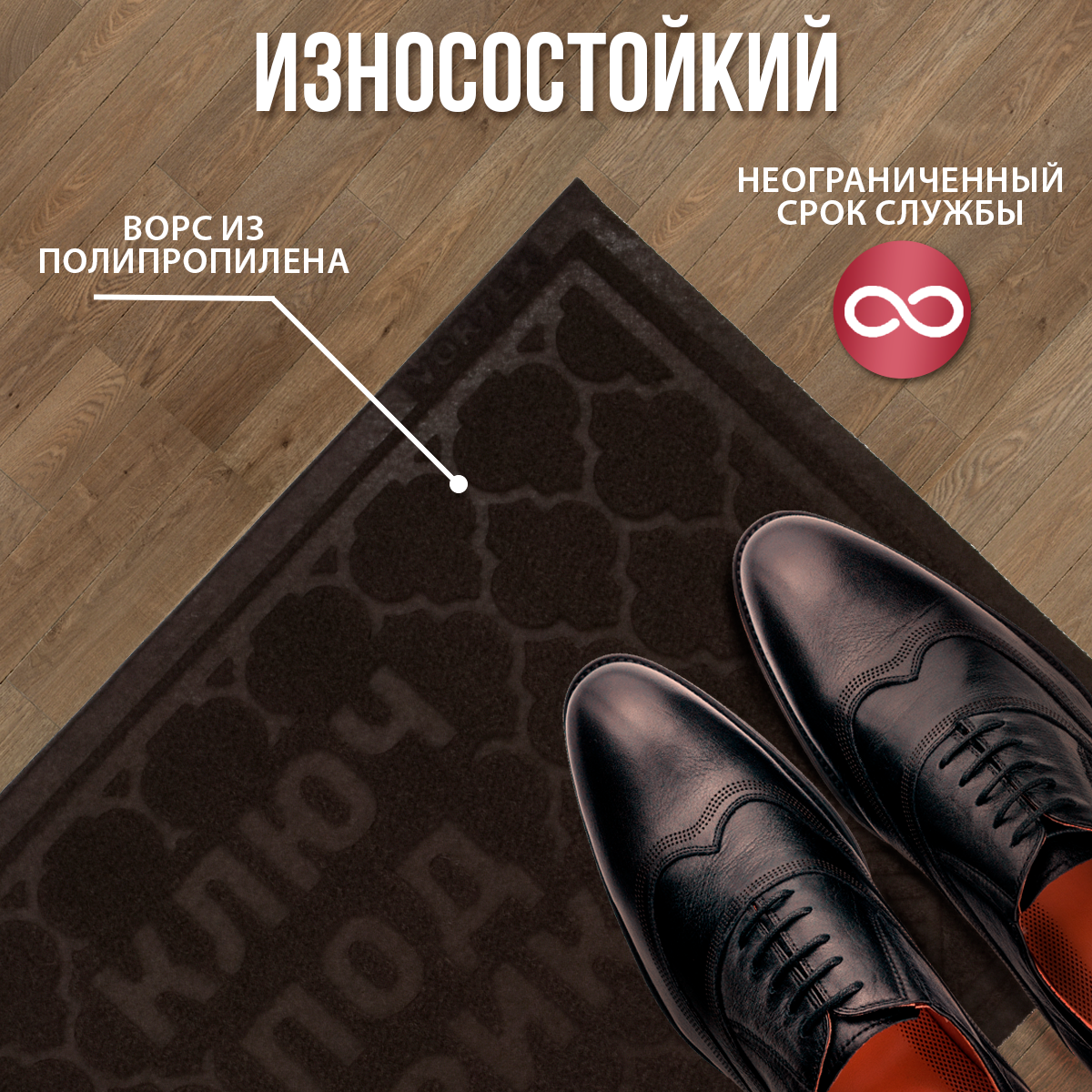 Предназначен для использования внутри и снаружи помещения. Очищает обувь от грязи и задерживает влагу при входе в помещение, не скользит.