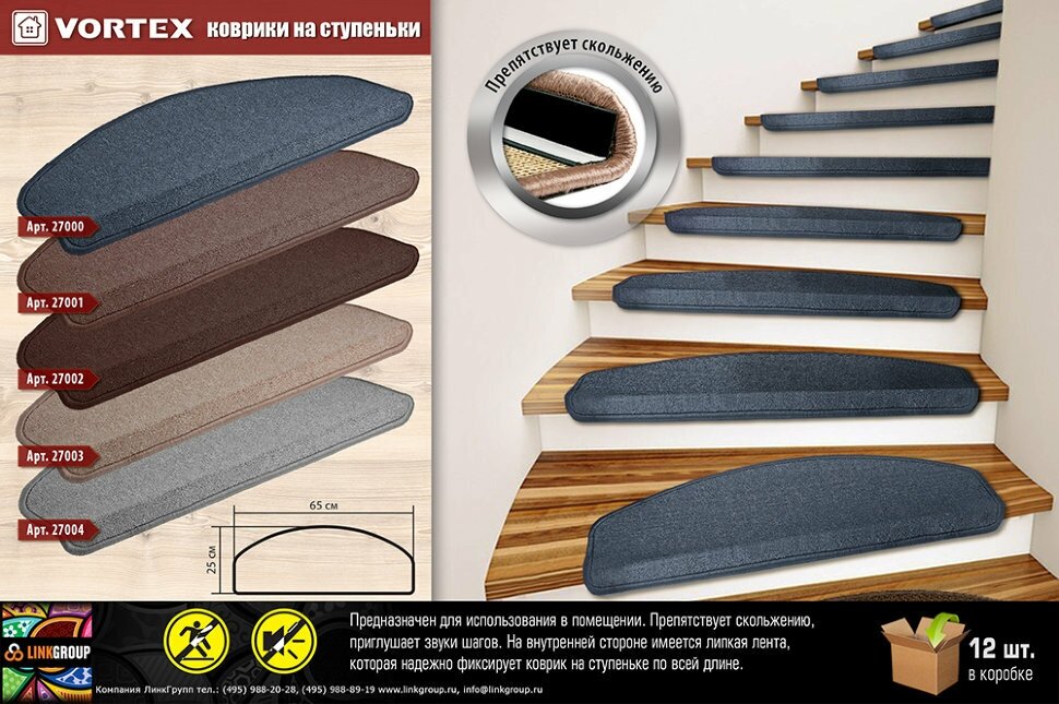 - Коврик на ступеньку 25х65 см, серый (Vortex) обзор 27004 производитель ЛинкГрупп ПТК (Россия)