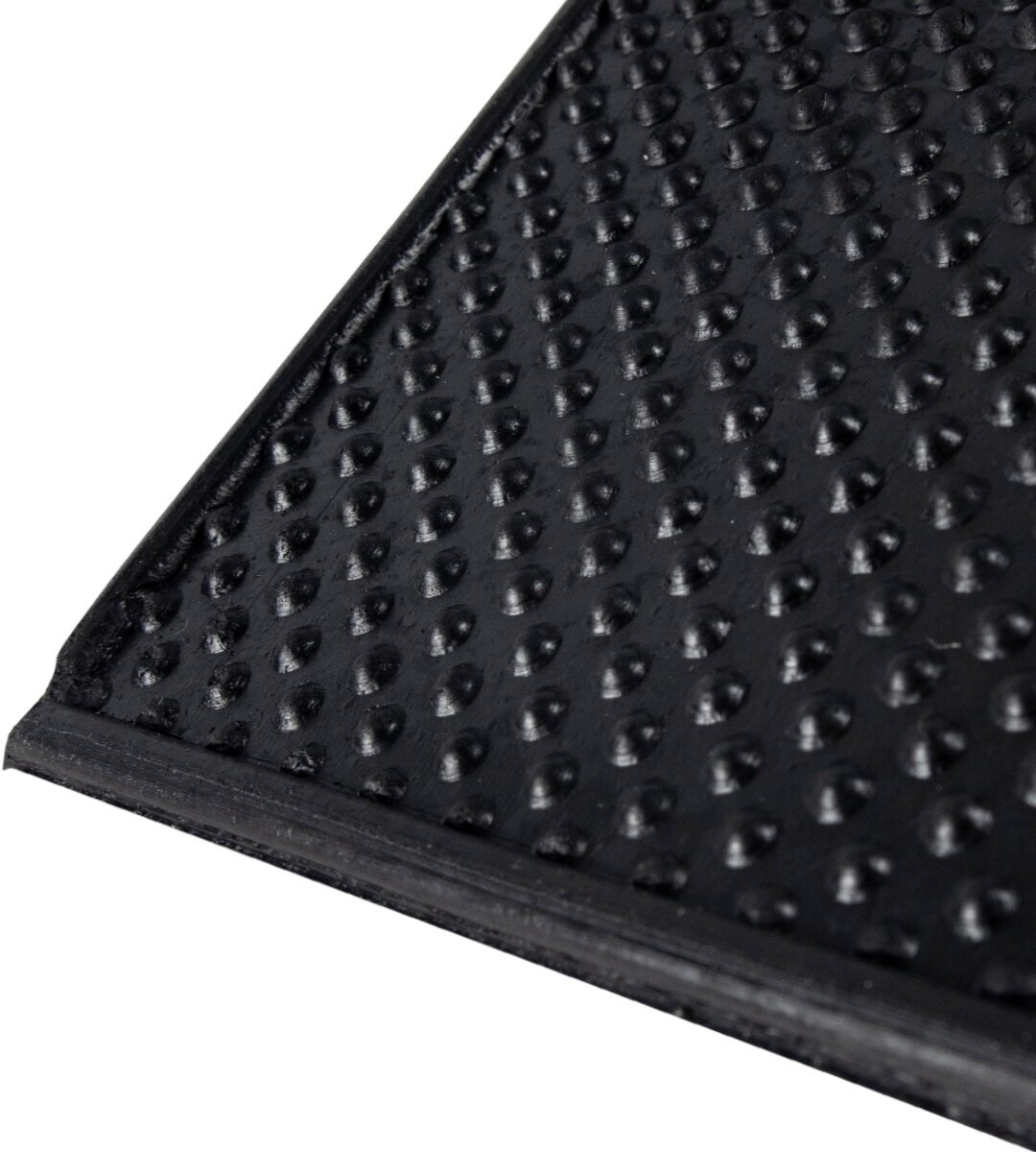 Классический резиновый придверный коврик. Благодаря шипам и рельефной поверхности отлично очищает обувь от грязи и песка при входе в помещение. Легко моется водой. Не скользит.