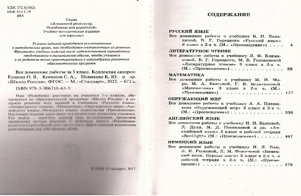 Наш "Решебник" рассчитан на учащихся 3 классов, обучающихся по образовательной программе "Школа России", и содержит решение всех заданий к учебникам "Русского языка", "Литературного чтения", "Математики", "Окружающего мира", "Английского языка", "Немецкого языка" издательства "Просвещение". Настоящее издание адресовано исключительно родителям учащихся. Его задача - наметить верный путь исследования, применить правильные методы решения. С помощью нашего "Решебника" родители в кратчайший срок смогут стать эффективными домашними репетиторами для собственных детей.