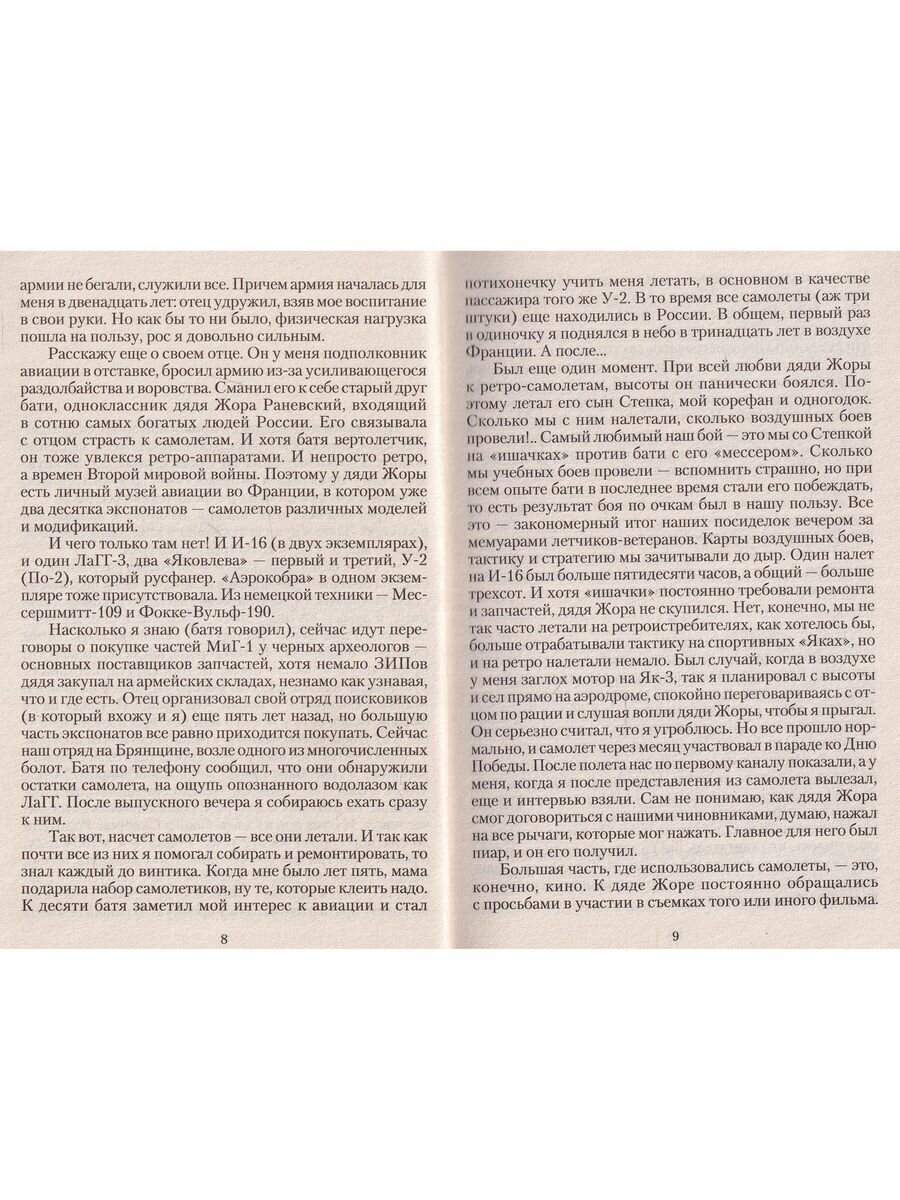 Прочитал разом! Читается очень легко. Те , кто читал воспоминания Покрышкина и Кожедуба, конечно понимают фантастический вымысел автора. Но он молодец, получился красивое приключенческое повествование от первого лица. Думаю , скоро будет продолжение. Советую читать, для приятного время прохождения!