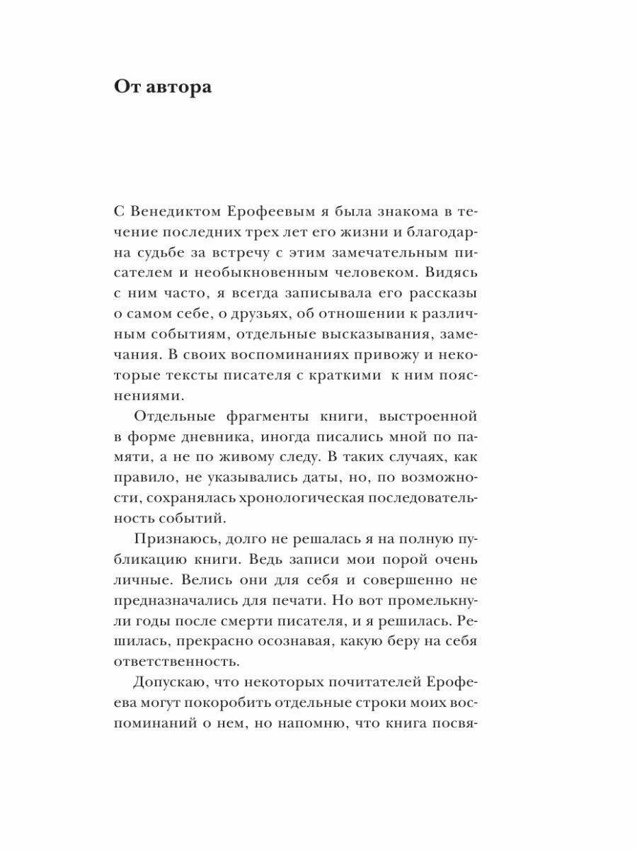 Не могу не написать отзыв. Последнее поколение интеллектуальной тусовки, живший вне времени, в творчестве. Книга воспоминаний без купюр, как говорится. И жажда жизни Венички. Какое то русское начало во всей его жизни. Читаю и плачу… Наталье спасибо, за правду, за стиль изложения.
