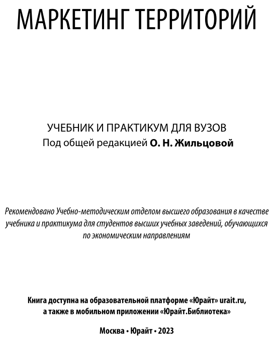 Маркетинг территорий : учебник и практикум для академического бакалавриата (Жильцова Ольга Николаевна); Юрайт, 2019