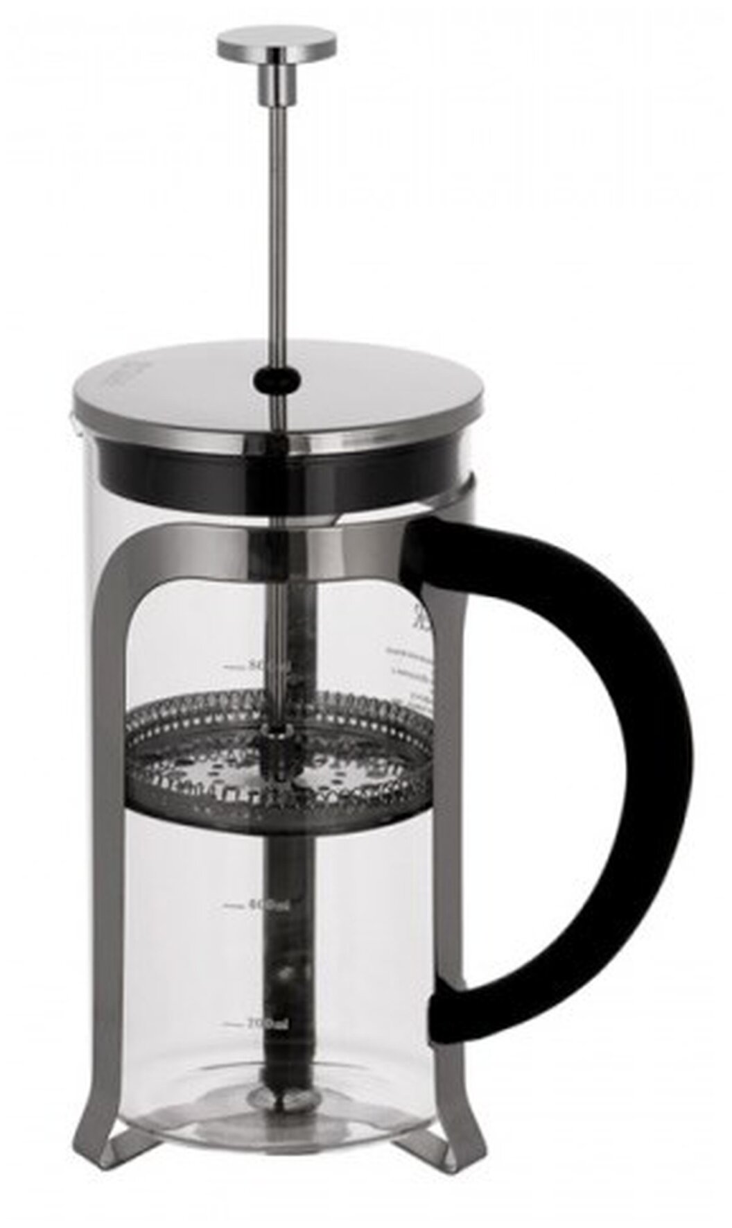 Френч-пресс «Берти» TR-32324, 1000 мл, Колба выполнена из боросиликатного стекла, устойчивого к перепадам температур. Корпус выполнен из высококачественной нержавеющей стали 18/10 (AISI 304) и безопасного пищевого пластика (РР). Пресс выполнен из высококачественной нержавеющей стали. Толщина колбы - 2 мм, толщина пресс-фильтра - 0,3 мм. В комплекте мерная ложка и буклет с рецептами. Пригоден для мойки в посудомоечной машине без использования абразивных моющих средств.