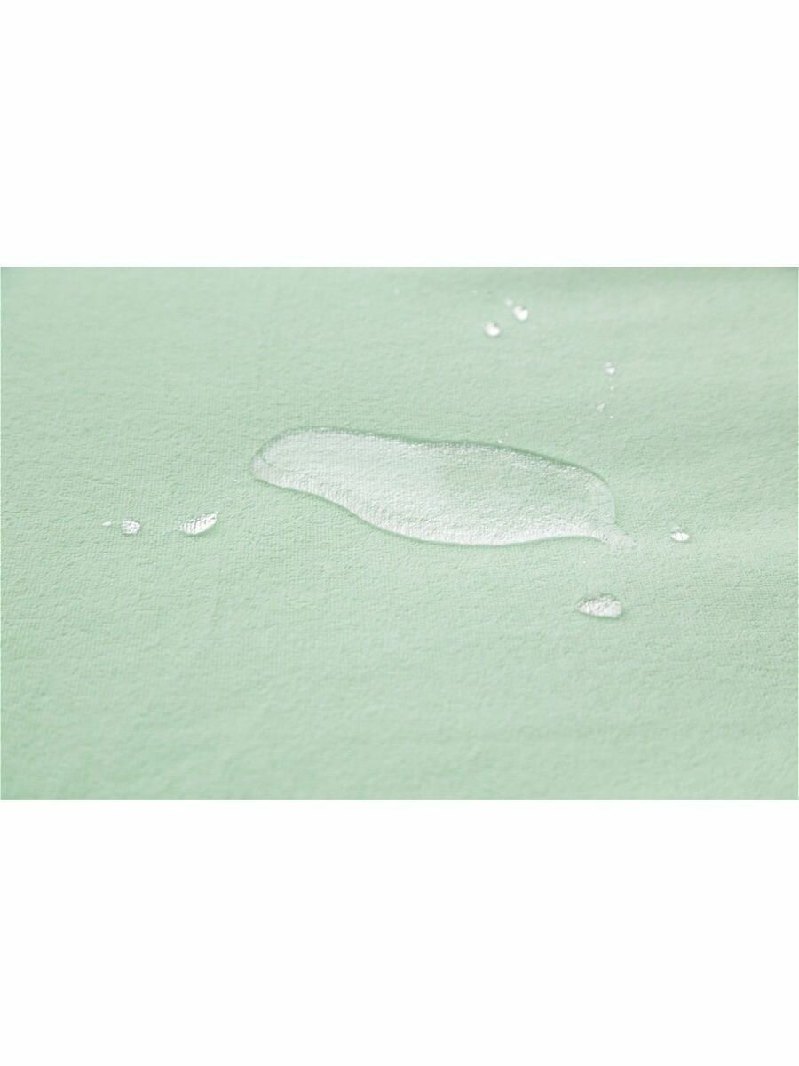 Наматрасник на резинке детский с водоотталкивающей мембраной представляет собой высокотехнологичную двустороннюю ткань, состоящую из: мягкого махрового материала 100% хлопок — с лицевой стороны и водонепроницаемой полиуретановой мембраны нового поколения — с изнаночной стороны. Микропористая структура тонкой мембраны дышит, но при этом полностью защищает матрас от проникновения жидкости. Материал не выделяет химических компонентов и неприятных запахов, обладает антибактериальными и антимикробными свойствами. Наматрасник на резинке удобен и практичен, легко одевается на матрас, не образует складок, ткань эластична и бесшумна, не расслаивается после стирки.