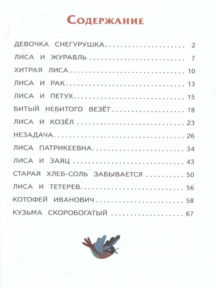 В красочный сборник русских народных сказок вошли все истории, главной героиней которых является рыжая плутовка Лиса Патрикеевна. Больше десяти сказк, в числе которых "Лиса и Журавль", "Лиса и Тетерев", "Битый небитого везет" и другие.