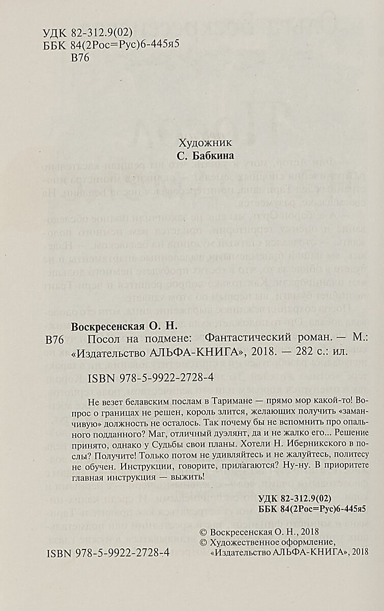 Книга: Посол на подмене (Воскресенская Ольга Николаевна); Альфа - книга, 2018