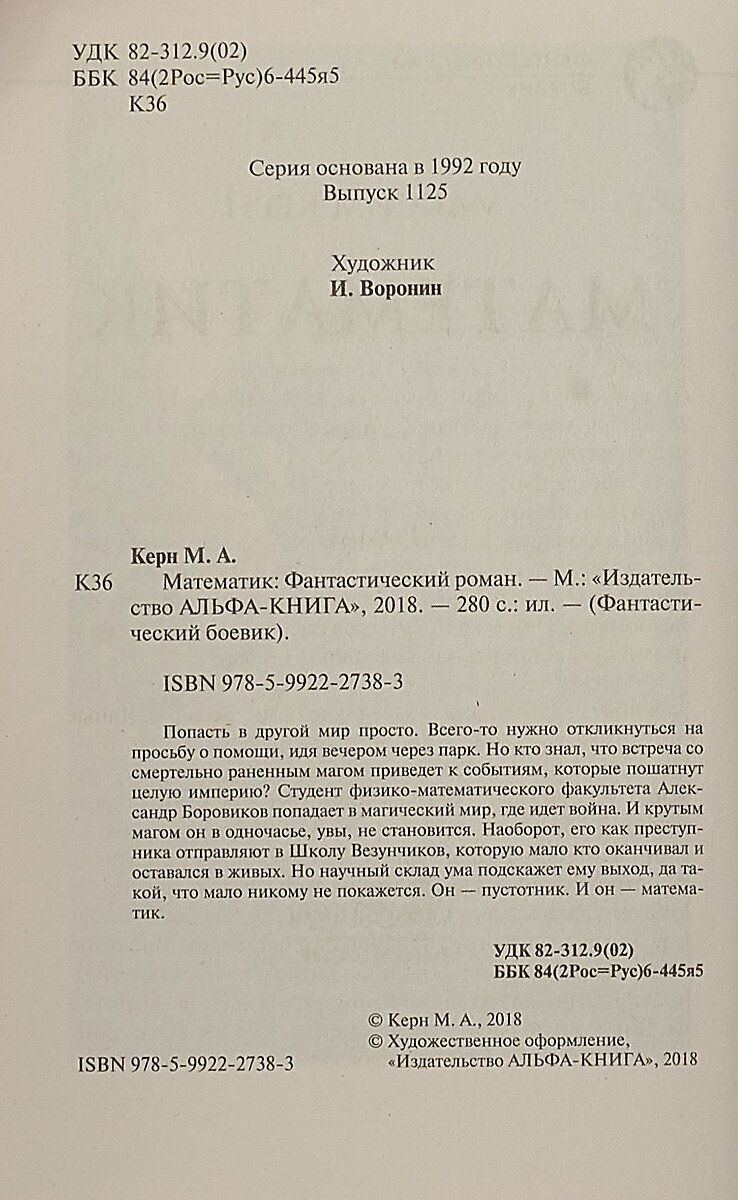 Книга: Математик (Керн Максим Александрович); Альфа-книга, 2021