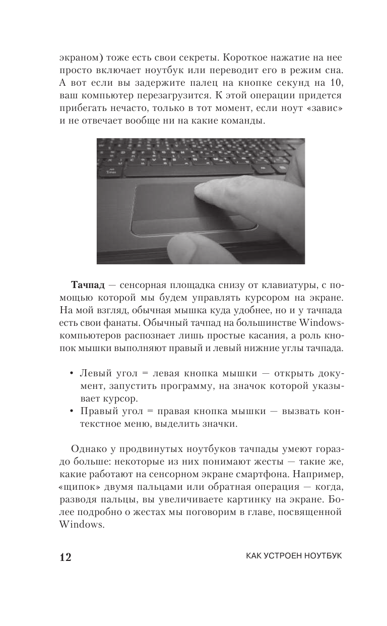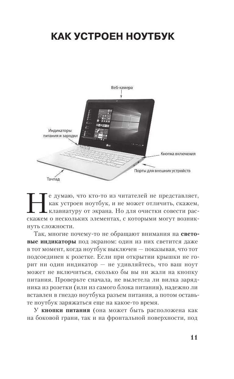 Пособие по работе на ноутбуке, до мелочей рассказывающее обо всех нюансах и проблемах, о работе в интернете и различных удобных базовых приложениях. Сопровождается иллюстрациями иконок и пошаговыми принтскринами с описанием «инструкций по применению». Всё очень просто и понятно.