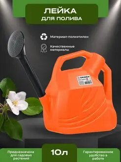 Тип: Лейка; Описание: Садовая пластмассовая лейка Grinda 10 л - инвентарь для равномерного полива растений. Она имеет съемный наконечник. Изготовлена из смеси полиэтилена высокой и низкой плотности, поэтому весит всего 510 грамм. Размер: 57х18 см.