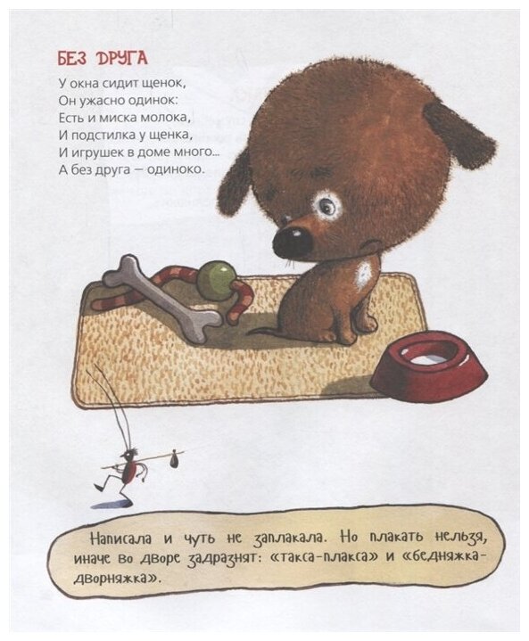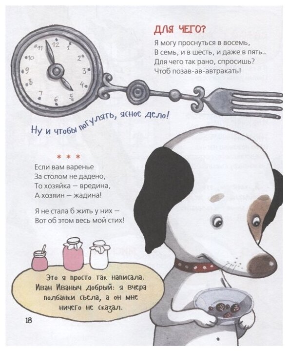 Маленькая собачка Соня не только умная и знаменитая, но еще и очень талантливая! Она сочиняет стихи обо всем, что с ней происходит, и записывает их в свой «Дневник» (он же «вечерник и ночник», ведь к настоящему поэту вдохновение приходит не только днем!). О вредной соседке Пчелкиной, о любимом хозяине Иване Иваныче, о воющем пылесосе, о Белке, Стрелке и летающей тарелке словом, обо всем на свете вы прочитаете в стихах маленькой, но очень умной собачки, полюбившейся и большим, и маленьким читателям. Иллюстрации Евгения Антоненкова.
