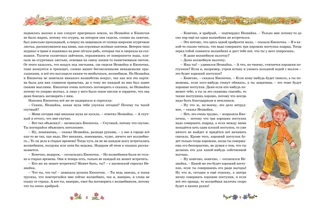 Обожаю Незнайку с детства! Но у меня издание 90-х годов на газетной бумаге, поэтому хотелось приобрести достойный экземпляр в нашу домашнюю библиотеку. Я долго выбирала, в буквоеде благо есть из чего) Иллюстрации Вадима Челака, которые есть и в самой книге и украшают обложку мне понравились больше всего! Книга большого формата на прекрасной белой офсетной бумаге доставляет несказанное удовольствие и мне и детям. Я купила все три книги про Незнайку в этом оформлении.