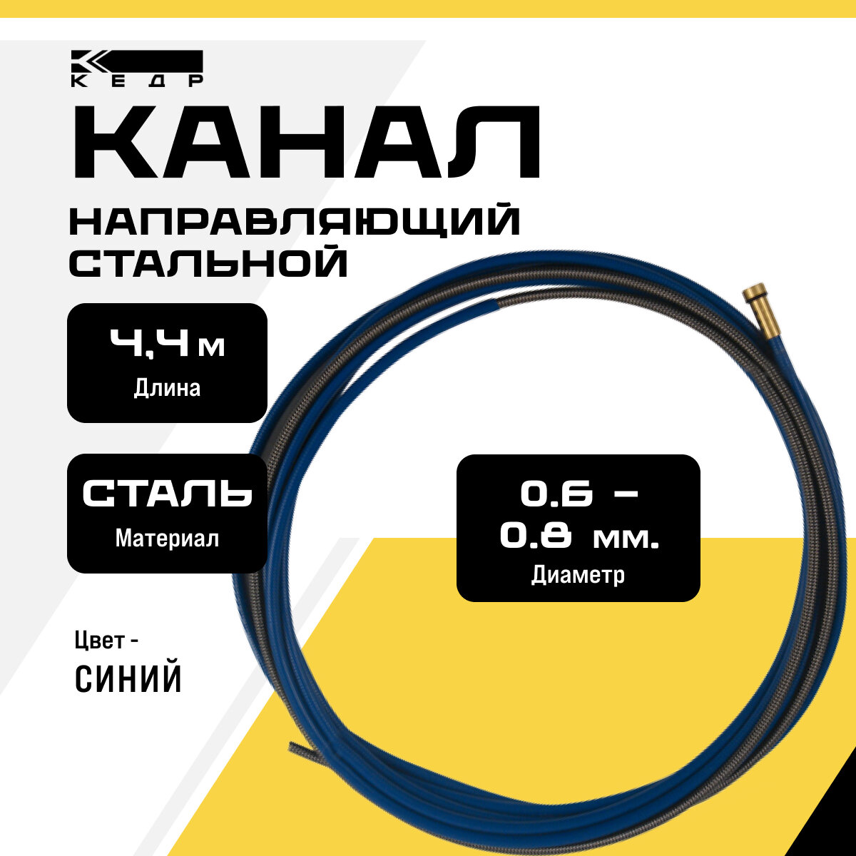 Канал направляющий Кедр PRO (4.4 м; 0.6–0.8 мм; синий) - применяется при сварке стальной проволокой, он подходит для всех проволок стандартных диаметров и материалов, а также для всех импортных сварочных горелок MIG. Для обеспечения стабильной подачи проволоки рекомендуем своевременно производить замену направляющих каналов.Преимущества Прочный Надежный Тип — МIG Под диаметр проволоки — 0.6-0.8 мм Длина — 4.4 м Цвет — синий