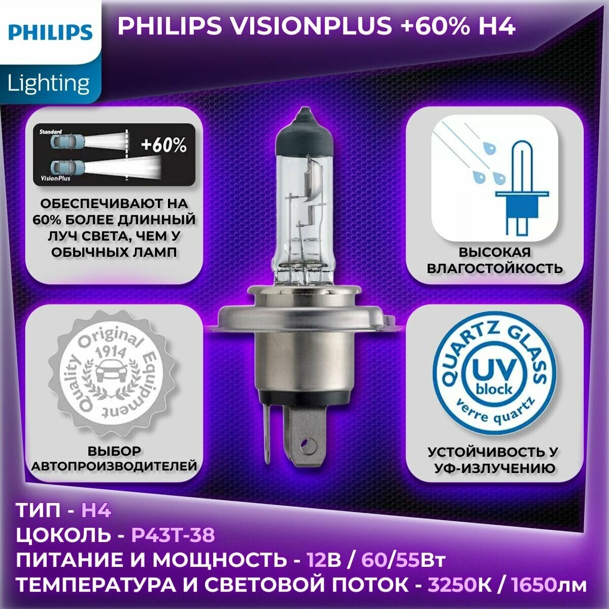 - Галогенная лампа Philips VisionPlus H4 60/55W 12342VPC2 (2 шт.)