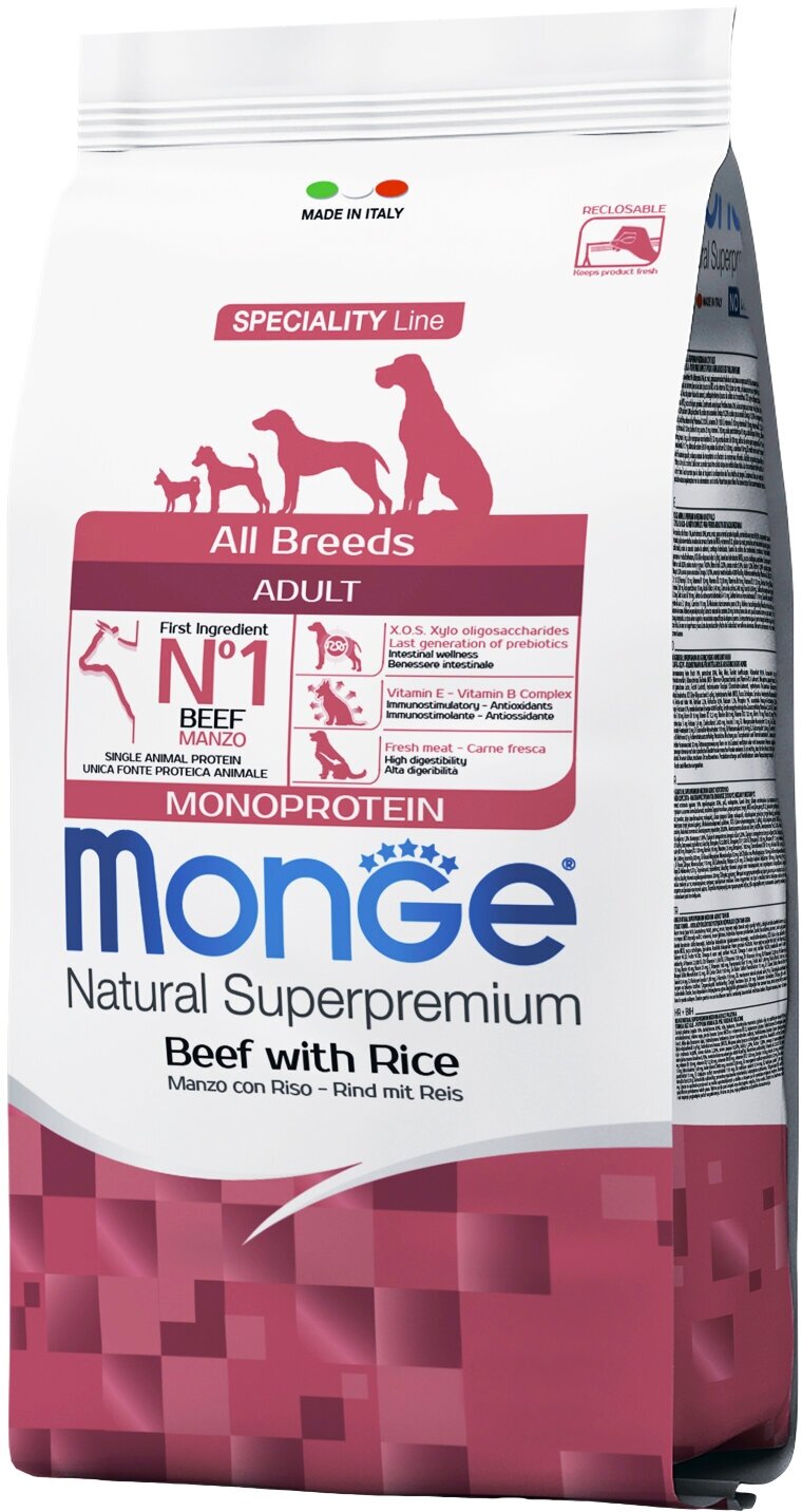 Сухой корм Monge для взрослых собак All Breeds Beef and Rice говядина/рис 2.5 кг (70004947)