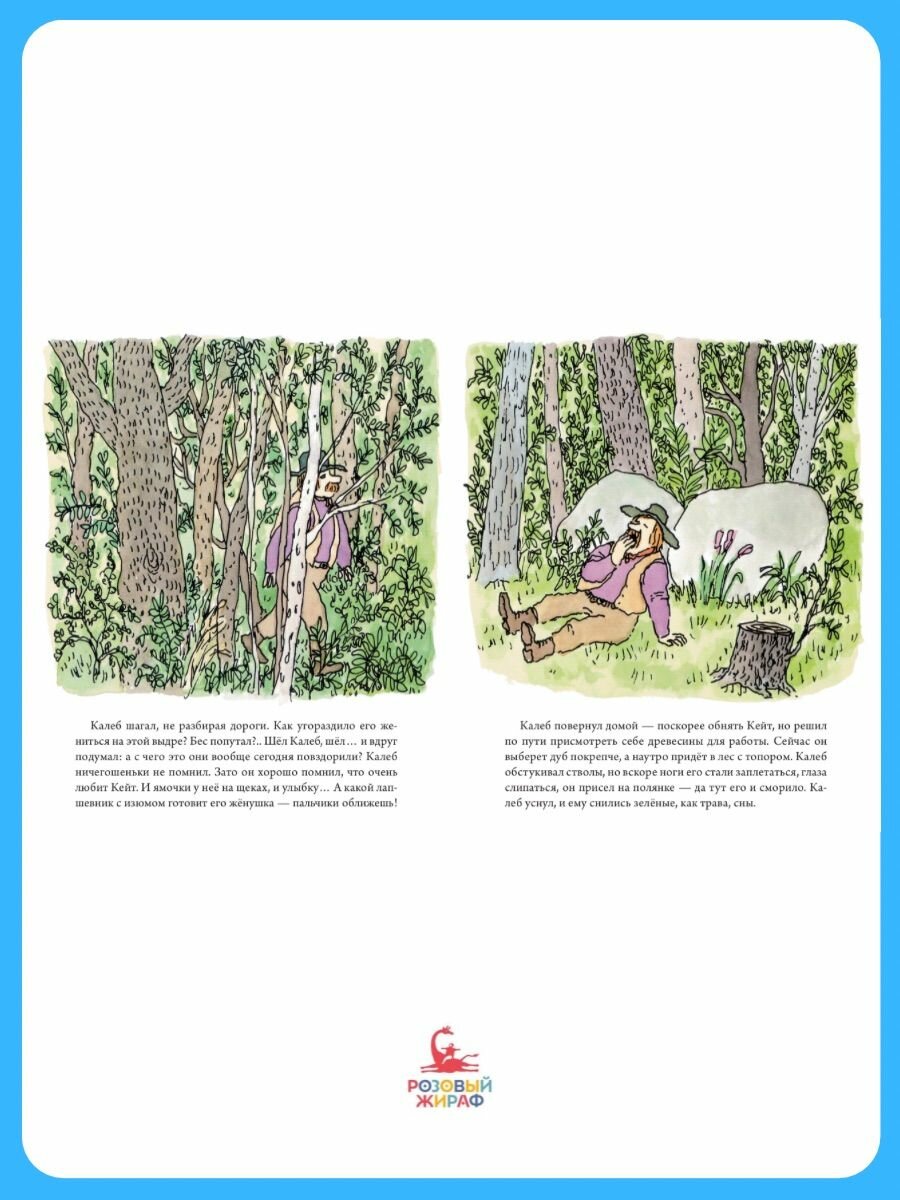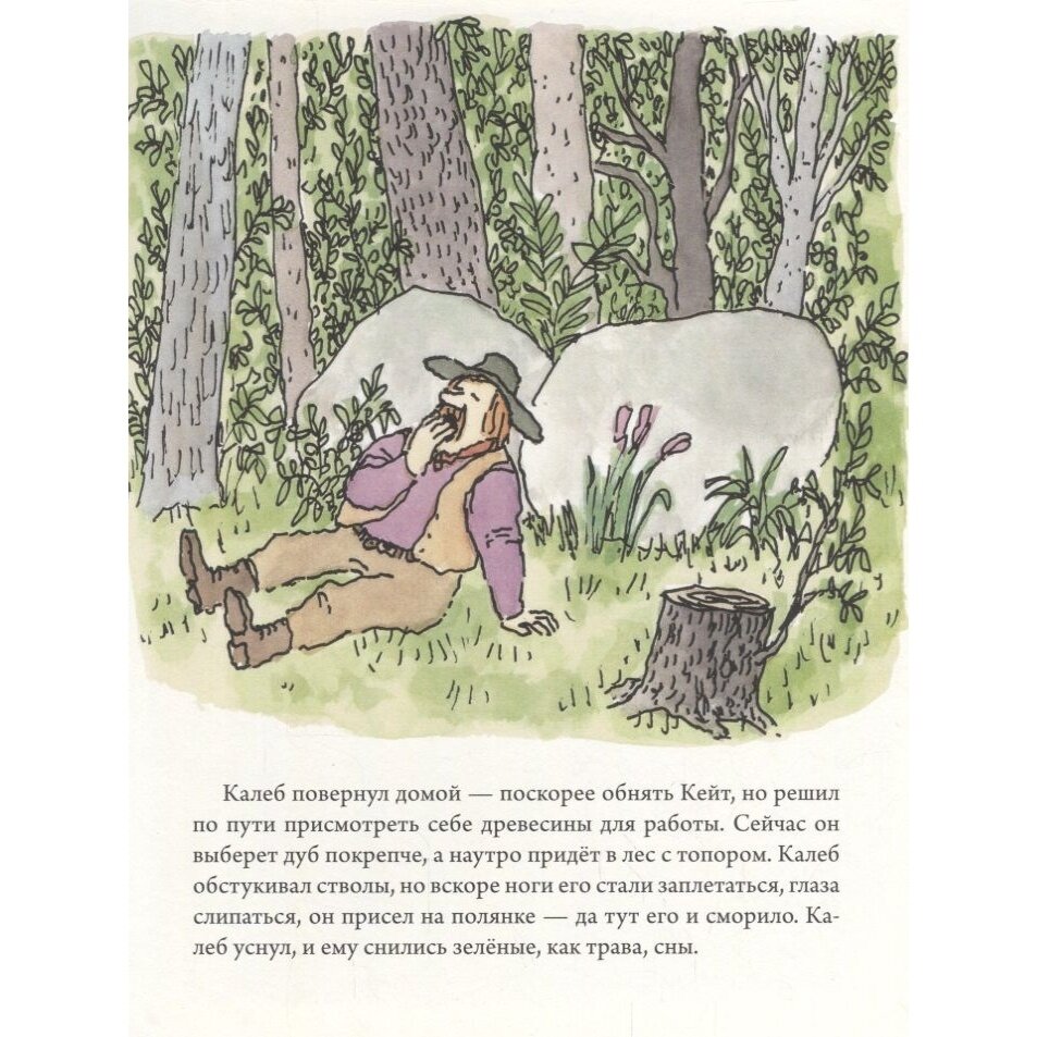 Дровосек Калеб и ткачиха Кейт очень любят друг друга, но часто ссорятся, зато, правда, потом быстро мирятся. И вот однажды, посреди ссоры Калеб так разозлился, что, хлопнув дверью, ушел из дома. Как это обычно у них и бывало, уже совсем скоро Калеб забыл на что так злился, соскучился по Кейт и решил возвращаться домой, но перед этим ему захотелось чуть-чуть прикорнуть на полянке.