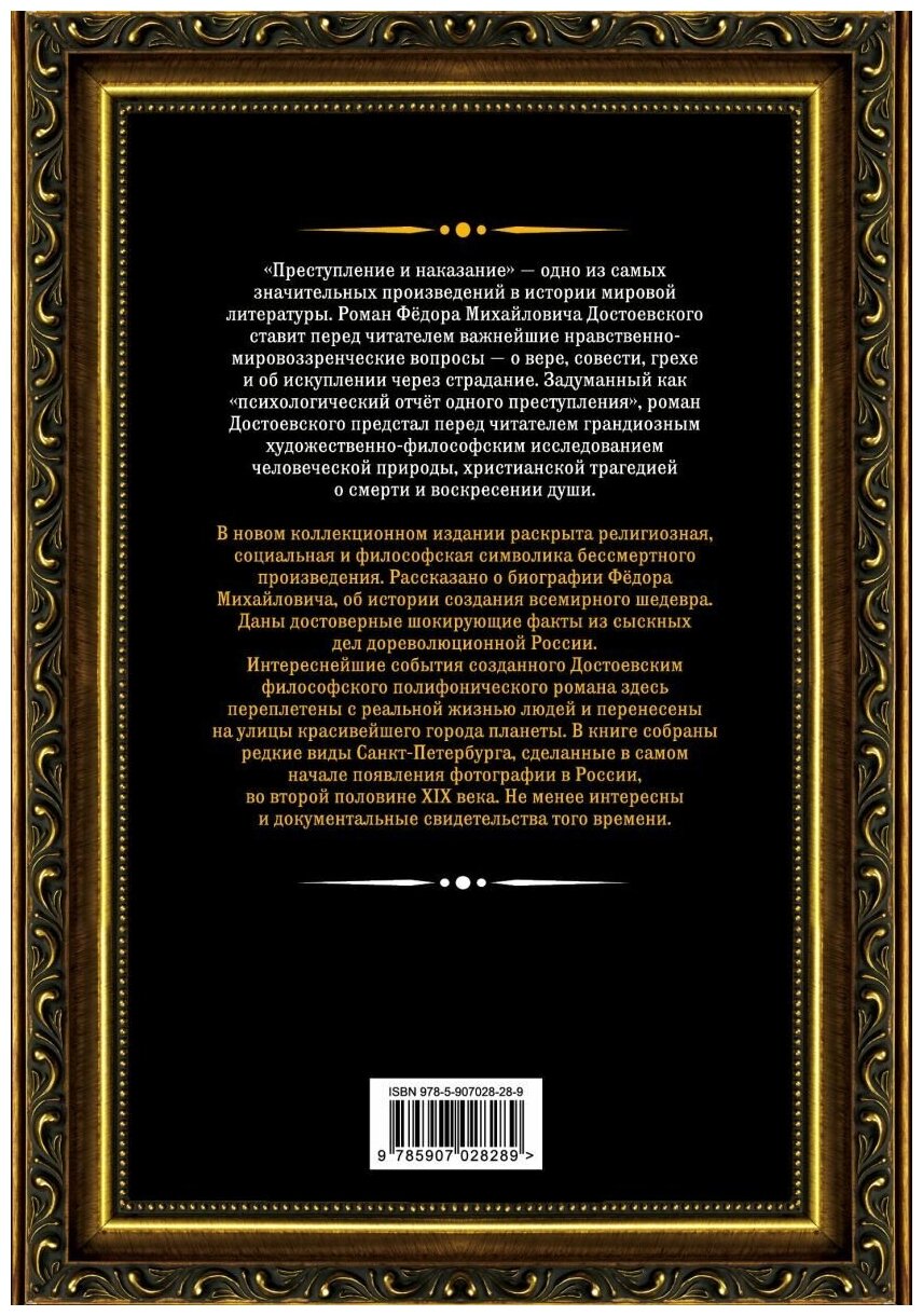 Любите этот роман Достоевского и хотите глубже проникнуть в мир писателя? Хотите знать, почему на крышке отцовских часов Раскольникова изображен глобус? Как выглядел «желтый билет»? Почему семейный платок Мармеладовых драдедамовый зеленый? Почему семья, сдающая комнату Соне, носит фамилию Капернаумовых? Где находится двор, в котором герой спрятал под камнем взятые у старухи вещи? Как вообще выглядели те улицы, площади, мосты, на которых происходили основные события романа? Ответы на эти и многие другие вопросы можно найти в новом подарочном издании романа «Преступление и наказание», осуществленном издательством «Алгоритм». Комментарии к роману содержат много действительно интересной информации, которая к тому же часто сопровождается фотографиями, позволяющими читателям собственными глазами увидеть то, о чем говорят комментаторы.