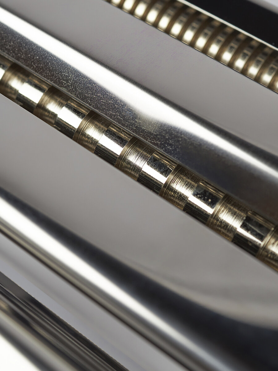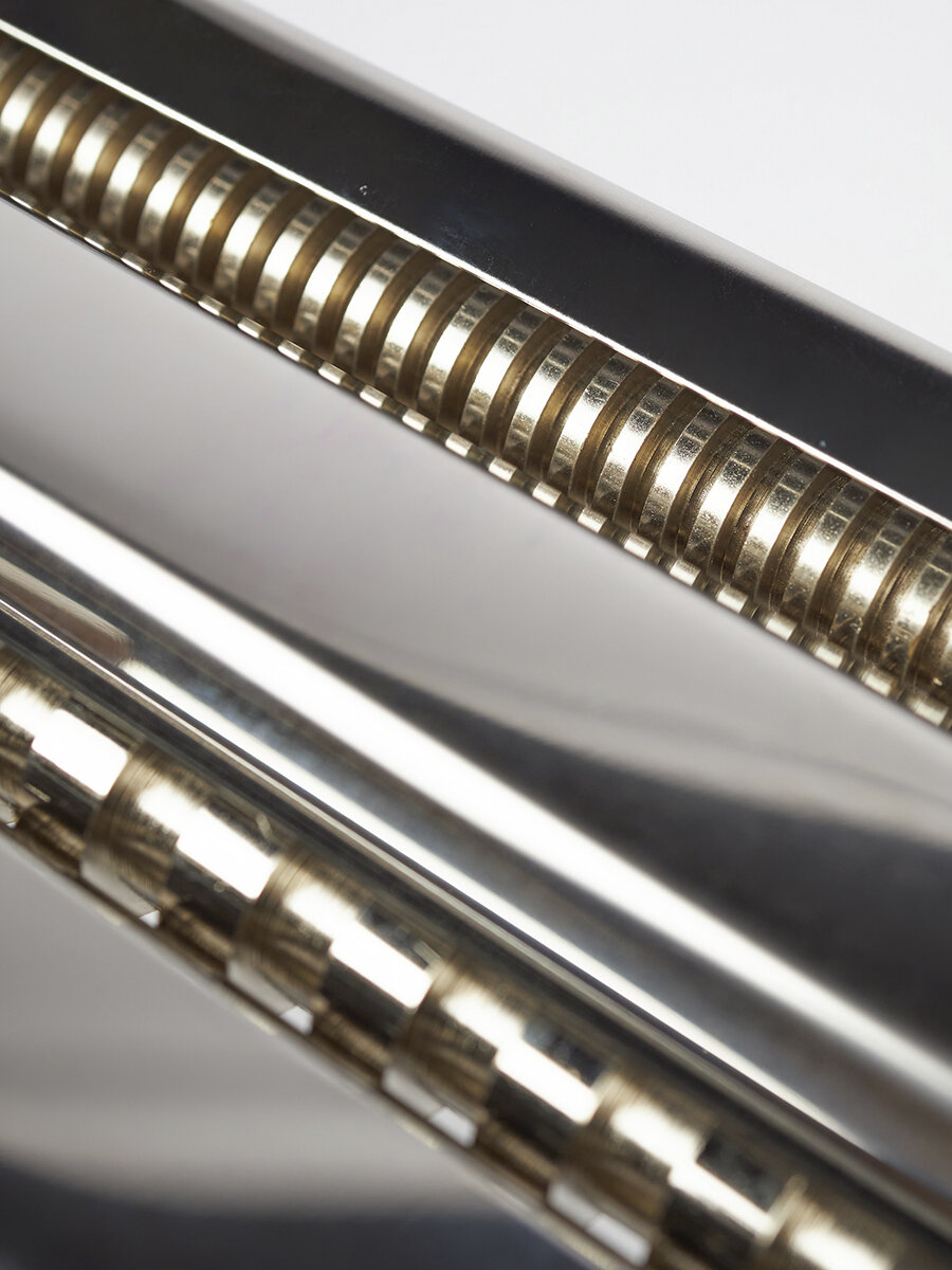 Данная модель лапшерезки раскатывает и нарезает пласты теста шириной 165 мм. Она идеально подходит для раскатки крутого теста, приготовления лазаньи, нарезки большого объема лапши. В лапшерезке предусмотрен вал для раскатки теста и два нарезных механизма для нарезания узкой или широкой лапши. Блок нарезных валов выполнен съемным для облегчения чистки.