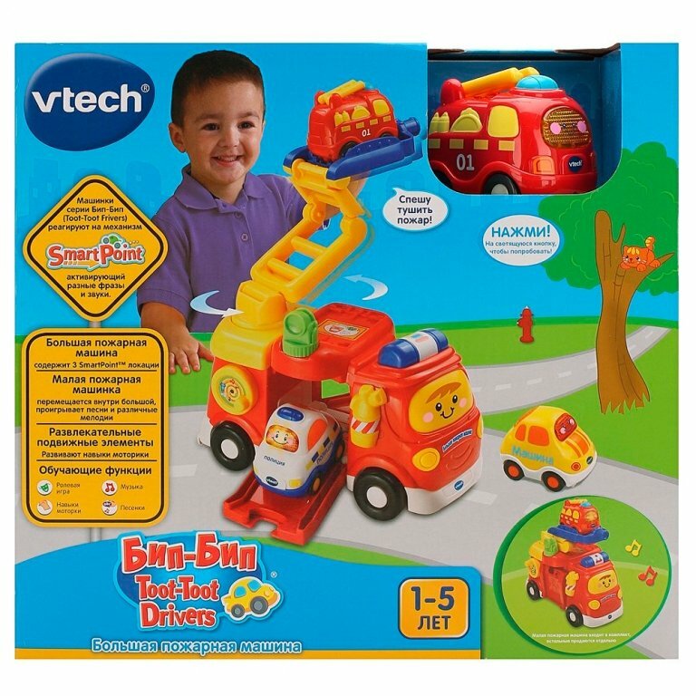 Большая пожарная машина - великолепный игровой набор из новой серии игрушек Бип-Бип Toot-Toot Drivers от бренда VTech!