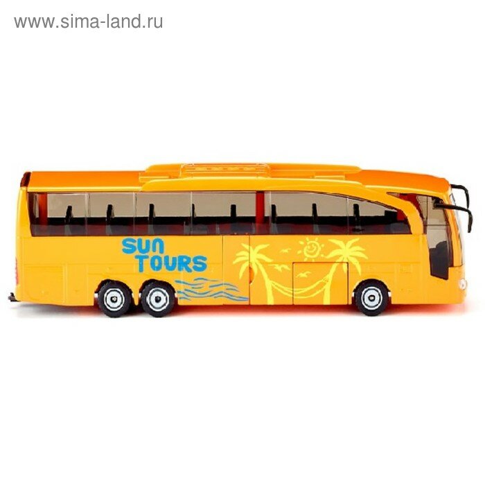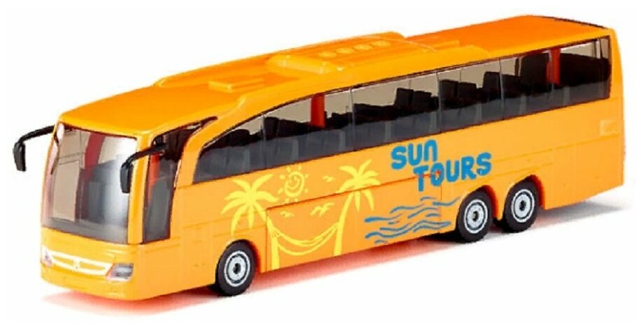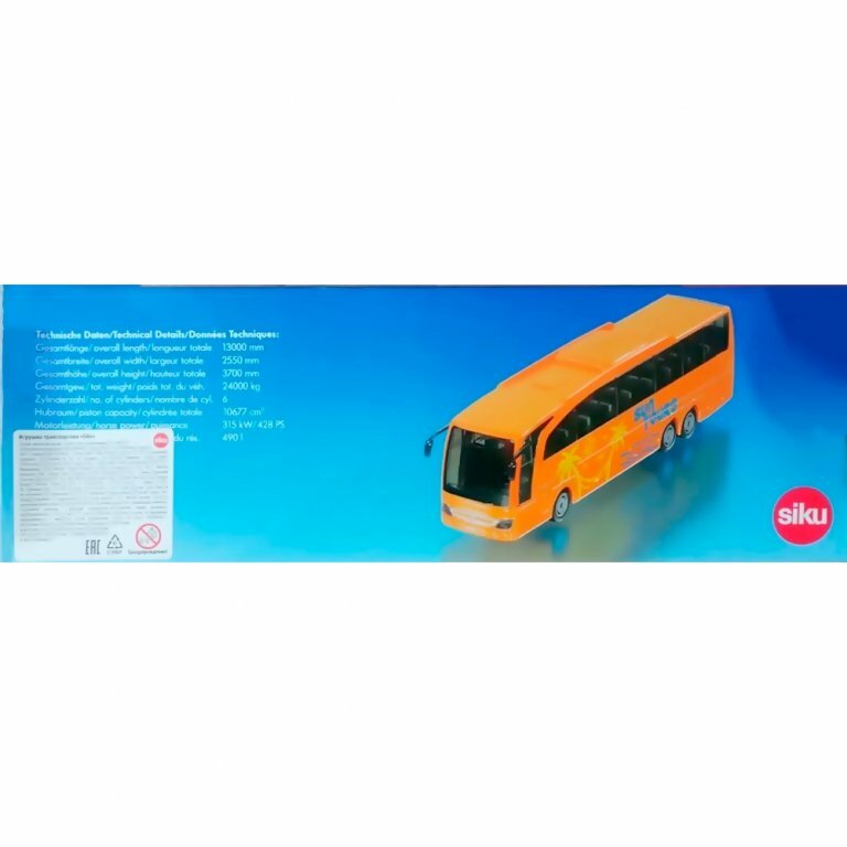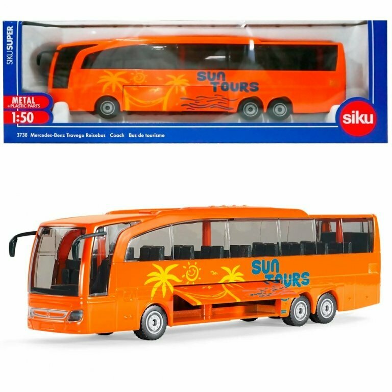 Игровая модель автобуса Mercedes Benz Travego представлена немецким производителем Siku в масштабе 1:50, прекрасно дополнит коллекцию моделей городского транспорта. Автобус выполнен в ярком оранжевом цвете, с изображением солнца, моря и пальм, которые ассоциируются с летом и отпуском. Новый автобус Travego от Mercedes-Benz обеспечивает безопасное и комфортное перемещение пассажиров и багажа на солнечные пляжи европейских курортов.