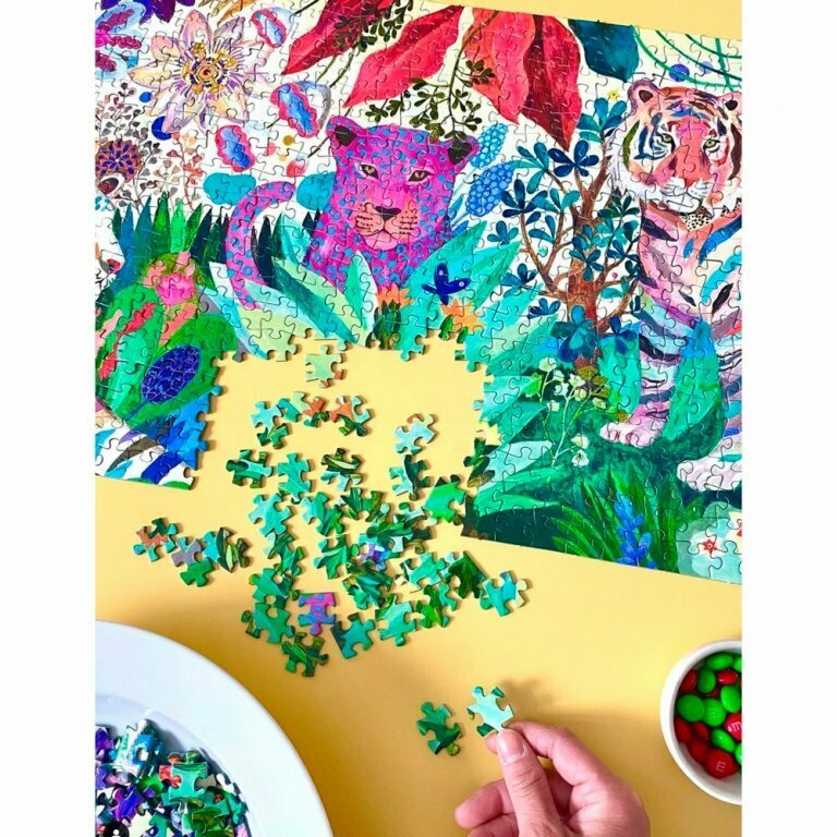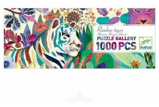 Пазлы от Djeco - это настоящие картины, завораживающие своей красотой и необычными сюжетами. Прекрасный подарок не только детям, но и всем любителям и коллекционерам мозаичных изображений. Из 1000 деталей ребенок с интересом будет составлять большую и красивую горизонтальную картину, изображающую радужный тропический лес с тиграми и леопардом. Картинка выполнена в необычных ярких цветах, конечный результат больше похож на настоящее произведение искусства, чем на головоломку. Собранный пазл можно вставить в рамку и украсить им детскую комнату. Пазл от Djeco можно собирать всей семьей, помогая друг другу искать подходящие детали. Пазлы развивают интеллектуальные способности ребенка в любом возрасте. Собирая мозайку, ребенок развивает воображение, внимание, память. Игра с пазлами формирует усидчивость, терпение и целеустремленность в достижении конечной цели. Яркие краски, разнообразие деталей делает процесс сбора пазла особенно приятным, независимо от возраста игроков. Размер собранного пазла 97 х 33 см. В пазле 1000 деталей. Для удобства сборки в комплект входит плакат с целым изображением того же размера.