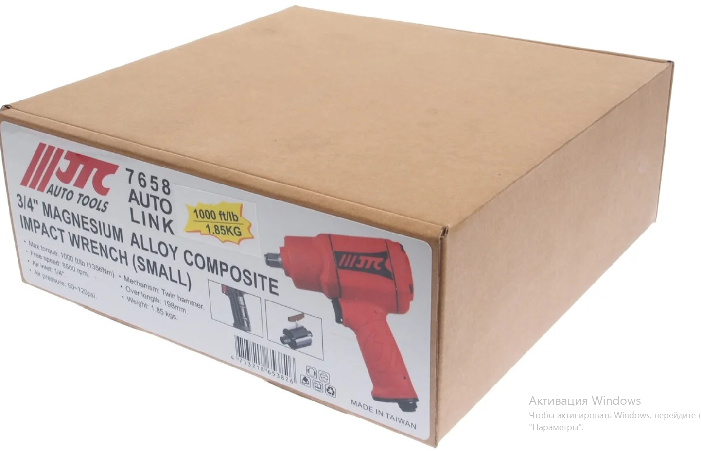 Пневмогайковерт ударный JTC JTC-, 3/4'' (1356 Nm), 90-120PSI, 8500об/мин, расход воздуха 158 L/min -надежный и практичный в эксплуатации инструмент. Используется в автосервисах и мастерских для закручивания болтов и гаек. Наличие удара дает возможность работать с прикипевшими и закисшими соединениями. Модель изготовлена из прочных и качественных материалов, благодаря чему прослужит длительное время. Обрезиненная рукоять пневмогайковерта не скользит в руке, обеспечивая удобный захват.Преимущества Внушительный рабочий ресурс JTC 3/4", 8500 об/мин Конструкция устойчива к механическим повреждениям Возможность длительной работы без остановки и перегрева Низкая пожаро- и взрывоопасность рабочего процесса