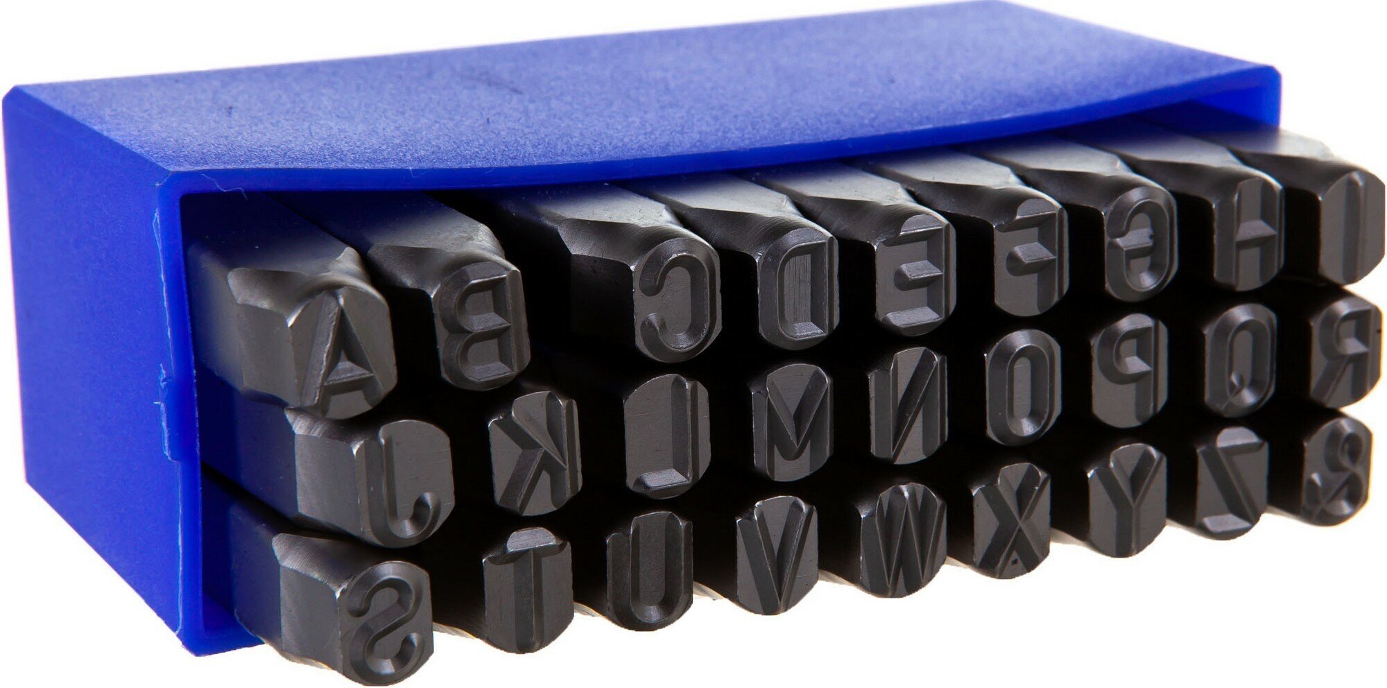 Буквенные клейма латиница 8 мм подойдут для нанесения информации на металлическую деталь или специальную пластину. Преимущество инструмента заключается в долговечности нанесенной информации в отличие от печатных символов.