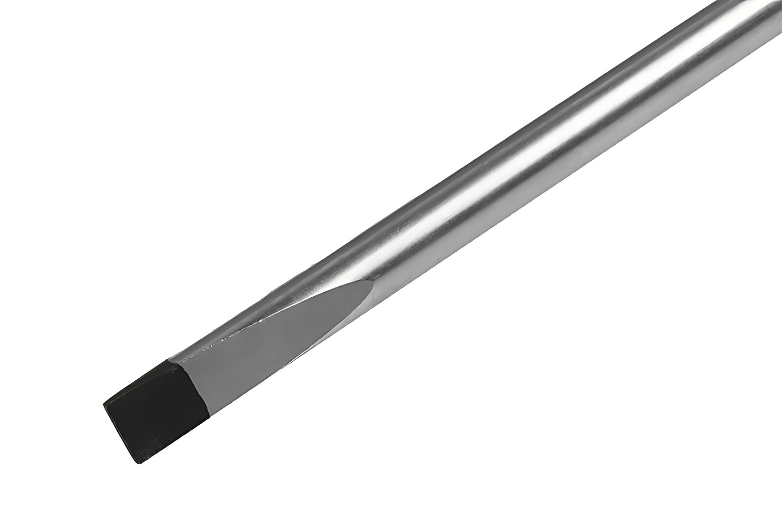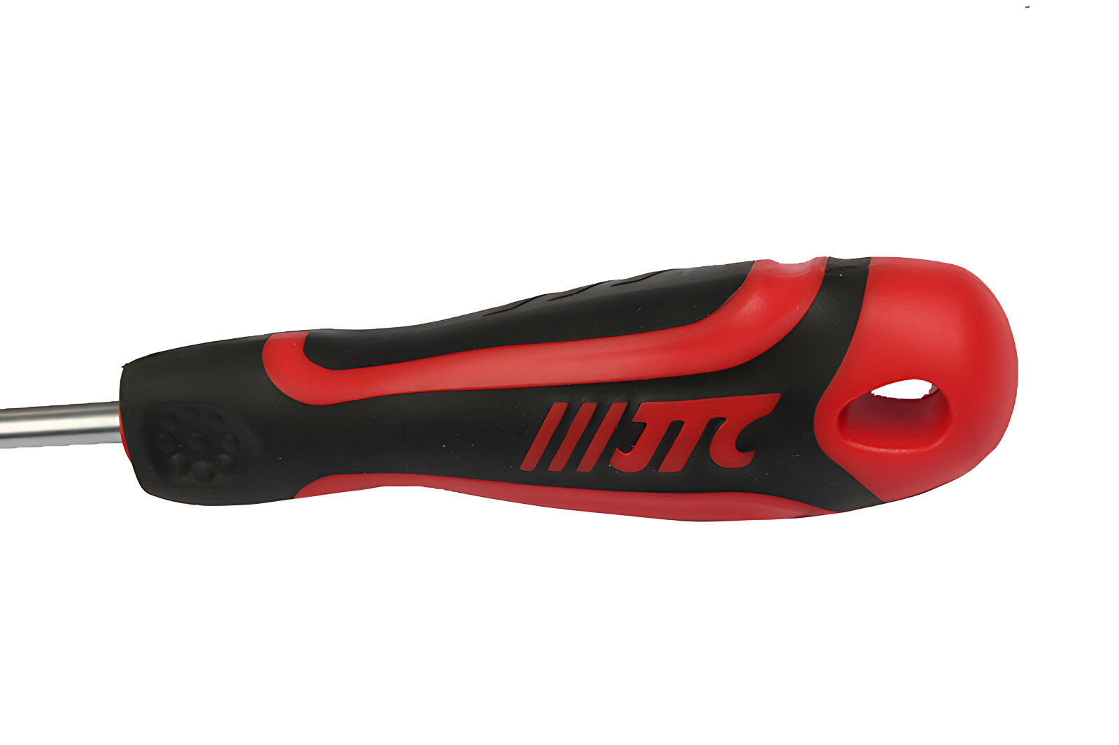 Усиленная шлицевая отвертка SL5.5 х 300мм JTC имеет отверстие под крепеж на стену.Преимущества Стержень изготовлен из CrMo стали, а поэтому выдержит нагрузку при закручивании крепежа Рукоятка имеет треугольную форму. Изготовлена из двухкомпонентного материала (РР + TPV). Обладает стойкостью к маслам, бензину и другим химическим веществам Рукоятка не скользит в руке, что обеспечивает надежность и комфорт в осуществлении работы Длина стержня: 300 мм