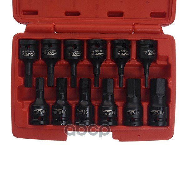 Набор ударных головок JTC JTC- предназначен для закручивания и откручивания болтов с профилем головки HEX H4–H19. Он используется в ремонте и обслуживании автомобилей, а также различной промышленной и бытовой техникиПреимущества Набор включает головки от H4 до H19, что позволяет работать с различными крепежами. Головки предназначены для использования с ударными инструментами, что облегчает работу с прикипевшими или заржавевшими болтами. Головки изготовлены из высококачественных материалов, таких как сталь S2 и SNCM 8660, что обеспечивает их надёжность и долгий срок службы. Набор поставляется в прочном пластиковом кейсе, который обеспечивает сохранность головок и удобство хранения и транспортировки
