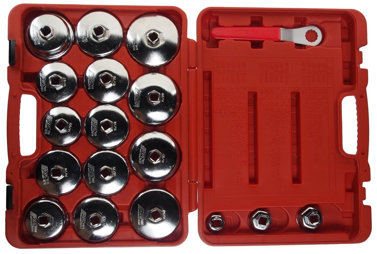 Набор съемников масляных фильтров (чашки) в кейсе 18 предметов JTC используется для быстрого и безопасного снятия и устновки масляного фильтра. Комплект включает в себя широкий диапазон размеров. Стальные съемники вращаются при помощи инструмента с посадочным квадратом 1/2" или ключа 21 мм. В комплекте имеется ключ с удобной рукояткойПреимущества Поставляется в кейсе Профессиональный инструмент Длительный срок службы