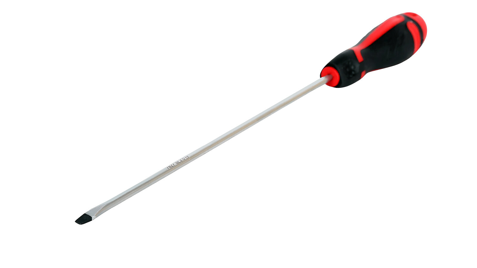 Отвертка, шлицевая SL3.0 x 150мм усиленная JTC легко справляется с типовым крепежом небольших размеровПреимущества Материал: 8NCM8660 Стержень отвертки стальной. Покрыт сатин-хромом, жало оксидировано Рукоятка имеет треугольную форму. Изготовлена из двухкомпонентного материала (РР + TPV). Обладает стойкостью к маслам, бензину и другим химическим веществам Стандарт DW 6.5 Размер: SLЗ.Ox150
