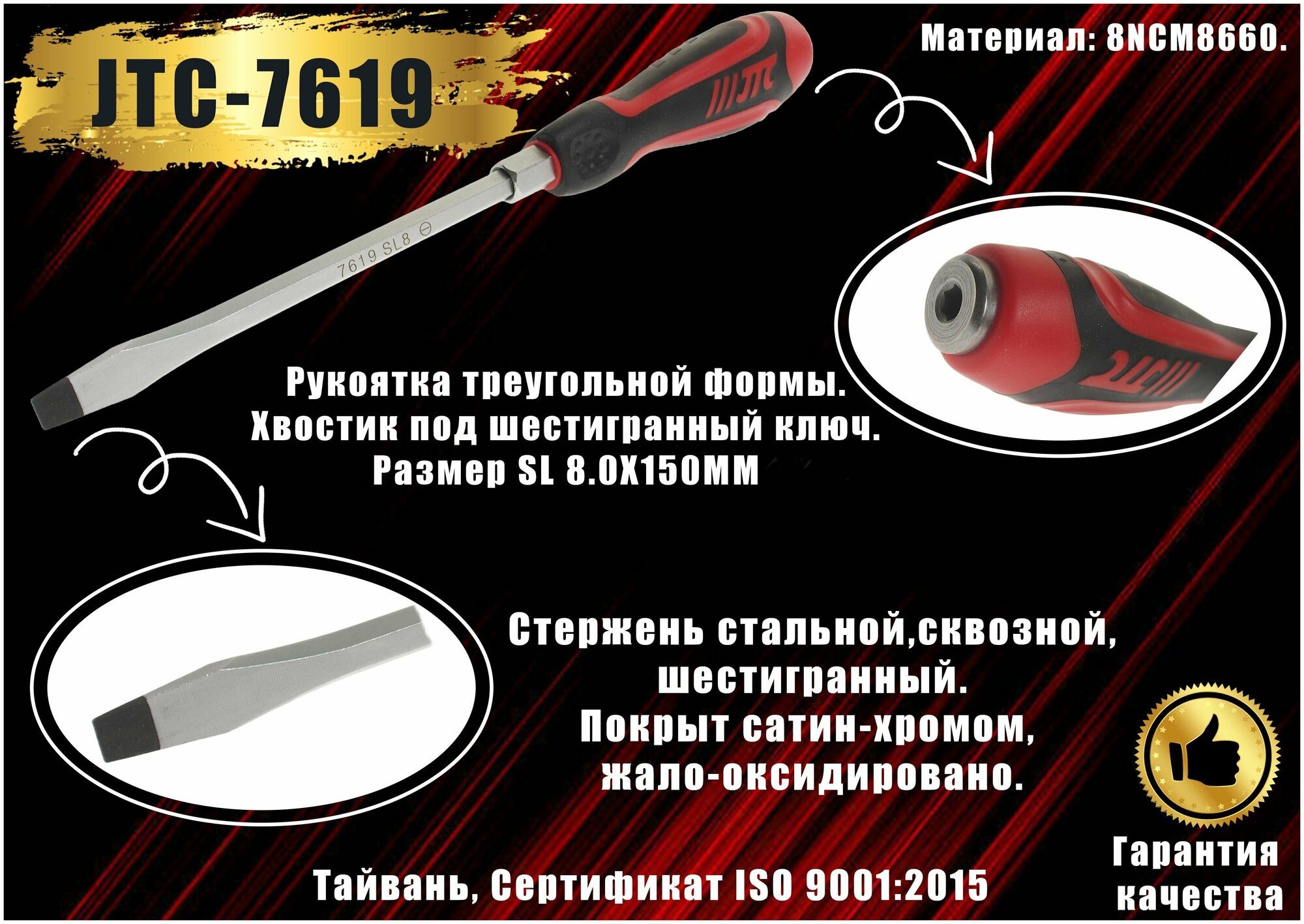 Усиленная шлицевая отвертка JTC 7619