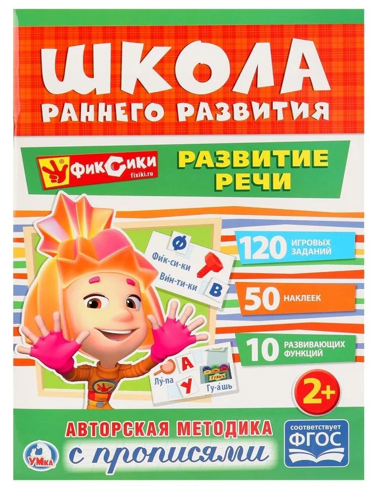 Школа раннего развития - новейшая серия пособий по обучению малышей с 2-х лет. Книга с наклейками и прописями "Развитие речи" включает 10 развивающих функций по эксклюзивной методике ТМ "Умка". В ней собрано 50 красочных многоразовых наклеек и 55 игровых заданий, которые сделают процесс обучения увлекательным и продуктивным. На страницах ребёнок найдёт изображения любимых героев мультсериала "Фиксики". Простые задания-прописи помогут подготовиться к письму. Пособия серии "Школа раннего развития" разработаны в соответствии со стандартами образования, поэтому станут незаменимыми помощниками при подготовке к школе. Авторская методика развивает речь, мышление, логику, внимание, самостоятельность, усидчивость и интерес к учёбе.