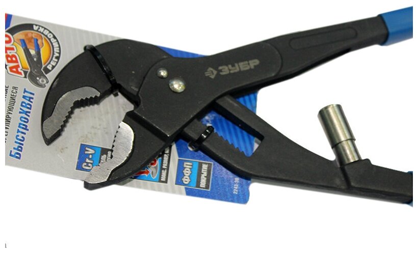 Клещи переставные саморегулирующиеся ЗУБР, с быстрым захватом, 240 мм, 2243 используются для слесарных , сантехнических и ремонтных работ .Клещи переставные обеспечивают надежный захват деталей разных форм и размеров, так же могут использоваться как трубный и разводной ключ . Клещи произведены из высококачественной хромованадиевой стали ,рабочии поверхности закалены . Удобная рукоятка не высказывает из рук , обеспечивая надежный и комфортный захват .