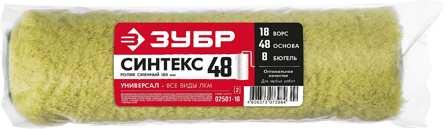 Cменный ролик ЗУБР Профессионал Синтекс 48 полиакрил 180 мм ворс 18 мм (02501-18_z02)Модель - 02501-18_z02Технические характеристики:-Длина: 180 мм-Материал шубки: полиакрил -Высота ворса: 18 мм-Внешний диаметр основы: 48 мм-Виды лкм: Универсал - все виды ЛКМ -Диаметр бюгеля: 8 мм-Технология производства: thermofusion -Обрабатываемая поверхность: грубаяВалики из полиакрила используются для нанесения красок на водной основе или красок с ограниченным содержанием растворителей.Имеют длительный срок службы, оптимальныдля неровных поверхностей. Для нанесениялаков не подходят, так как могут оставлять волокна.Преимущества:- Идеален для окрашивания неровных поверхностей - Создает равномерный качественный слой