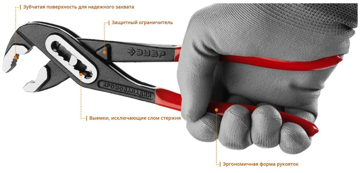 Профессиональные клещи ЗУБР отличаются усиленной цельнокованной конструкцией и тщательно закаленными рабочими поверхностями, разработаны для качественного выполнения слесарно-монтажных и ремонтных работ. Можно использовать в качестве трубного или разводного ключа.