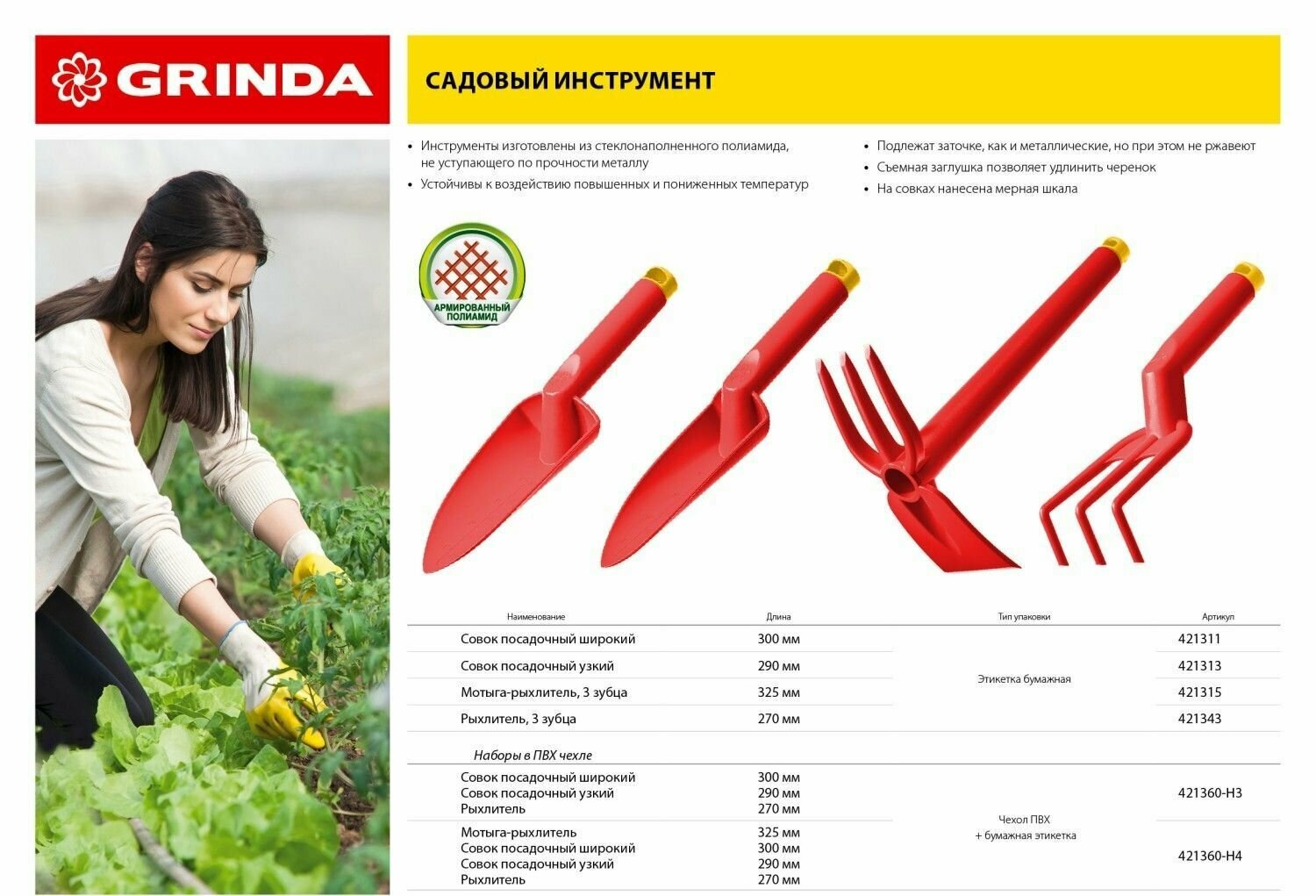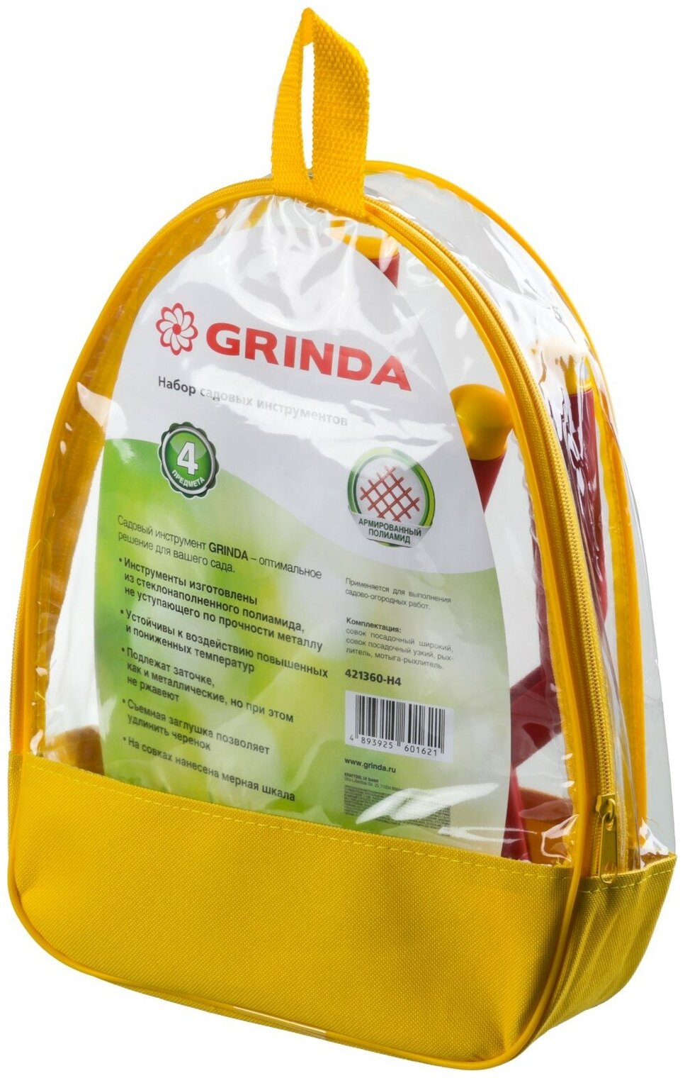 Набор GRINDA : Совок посадочный широкий, совок посадочный узкий, рыхлитель, мотыга-рыхлитель с нейлоновым корпусом, 4 предмета