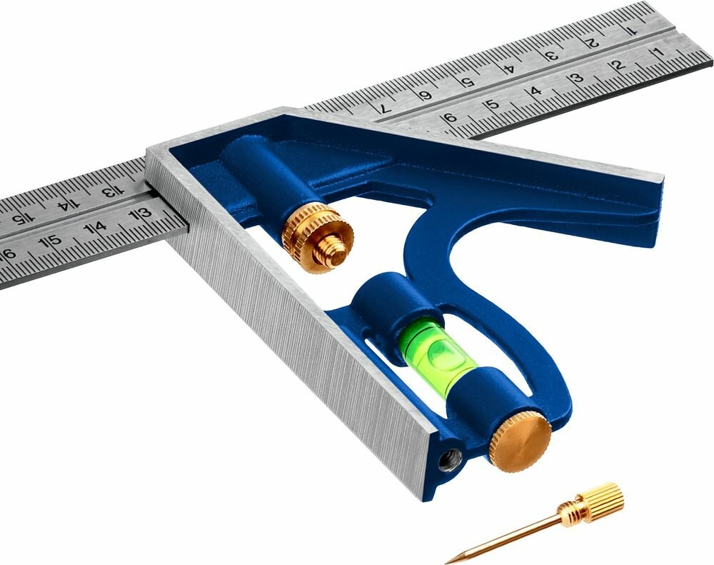 Комбинированный многофункциональный угольник профессионального применения. Изготовлен с высокой точностью на прецизионном оборудовании, что обеспечивает высокую надёжность разметки внешних и внутренних углов. Для разметки и контроля перпендикулярности конструкций при столярных и плотницких работах.